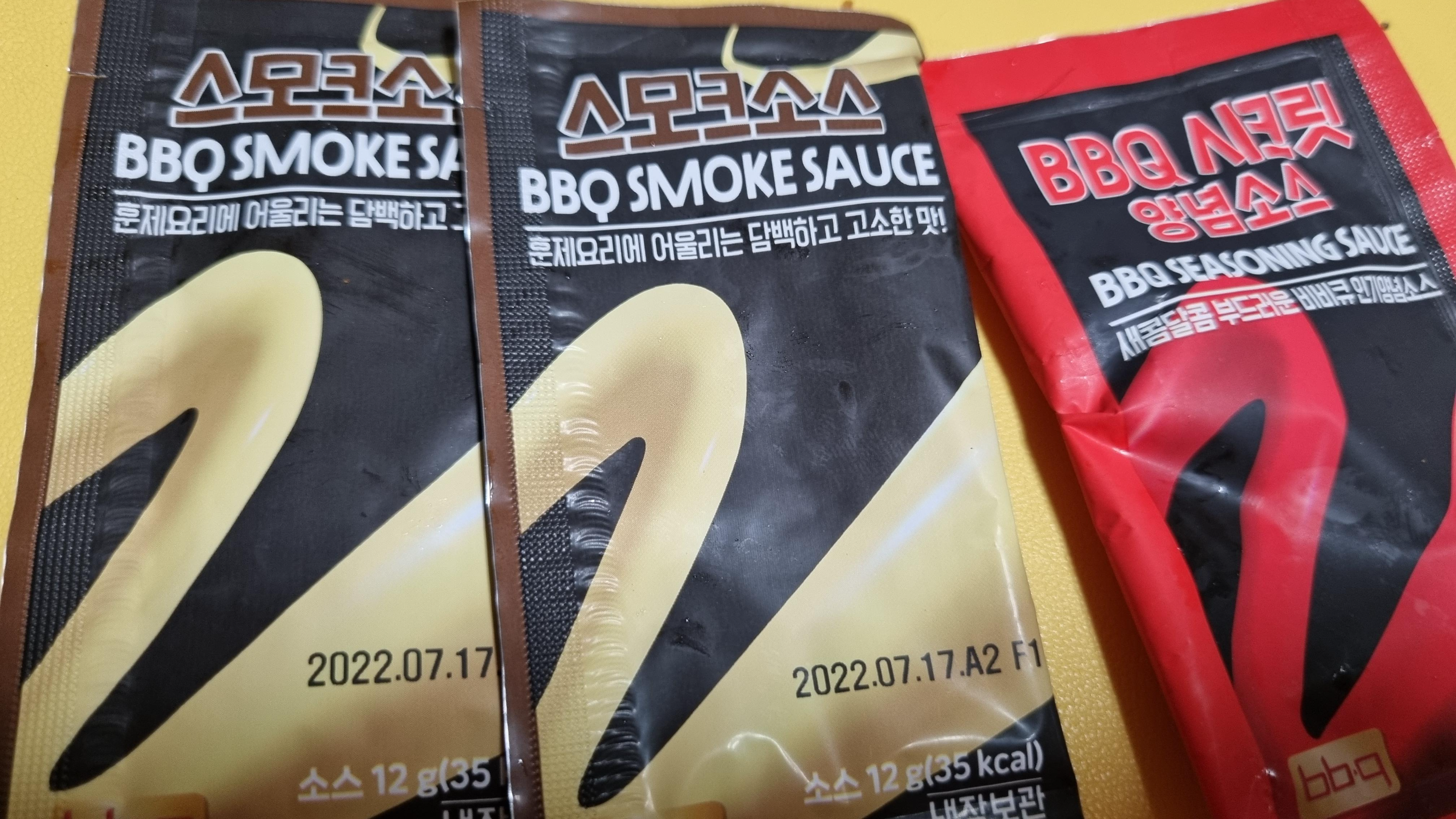 신랑 취양은 양념, 내 취향은 후라이드, 아이들은 케이준 감자. 그러나 BBQ 신메뉴 자메이카 통다리도 먹고 싶다. 2마리를 시키자니 너무 많아서 자메이카 통다리는 반마리만 주문했다. 어떤 후기에서 스모크 소스 찍어 먹으면 맛있다고 하길래 추가도 했다.