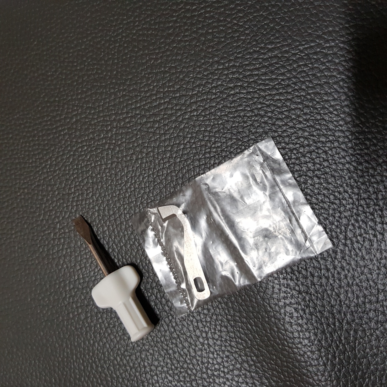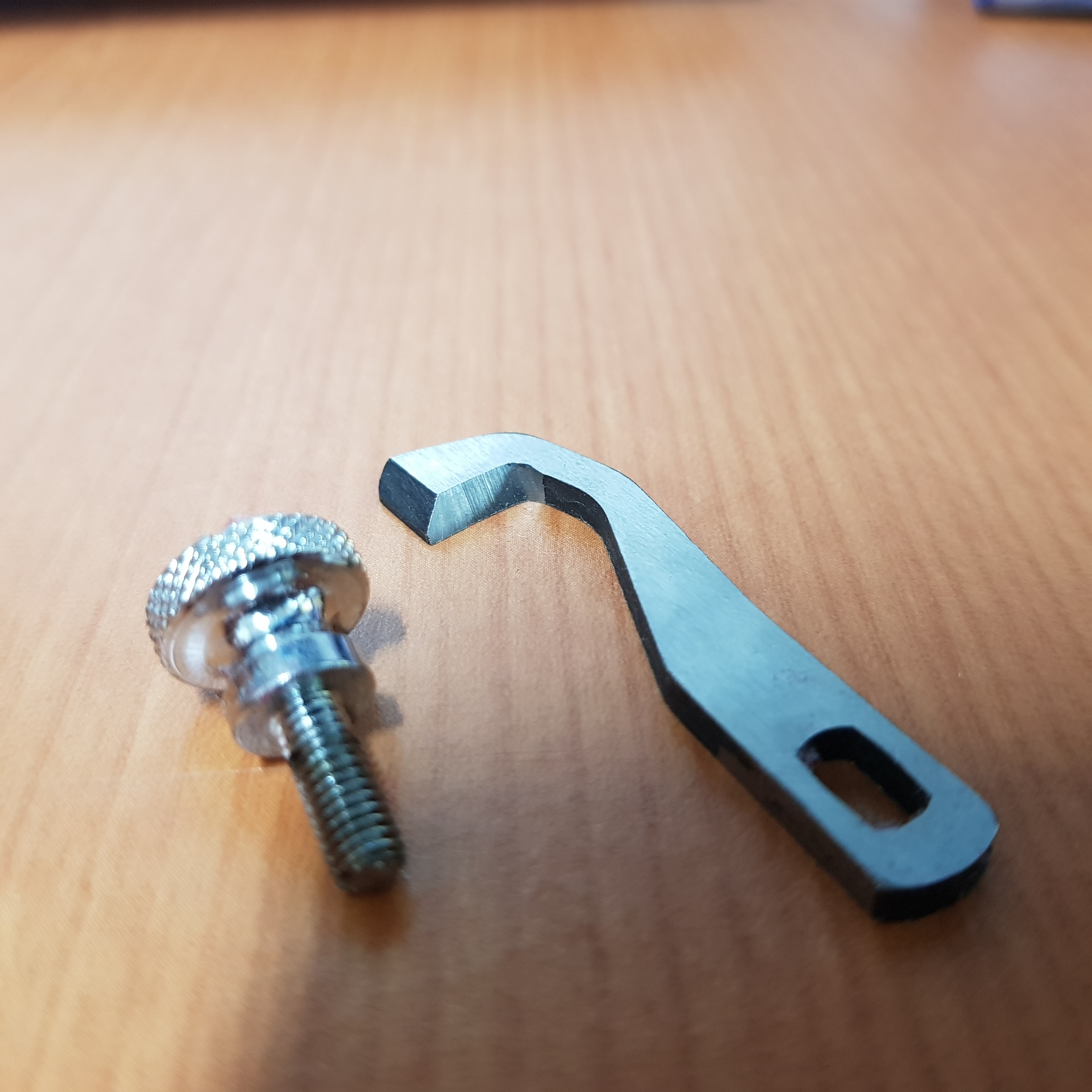 상칼 고정 나사는 원형이고 상칼에서 나사 들어가는 부분은 직사각형이다. 불편하게도 한 번에 끼워서 딱 고정할 수 없다.