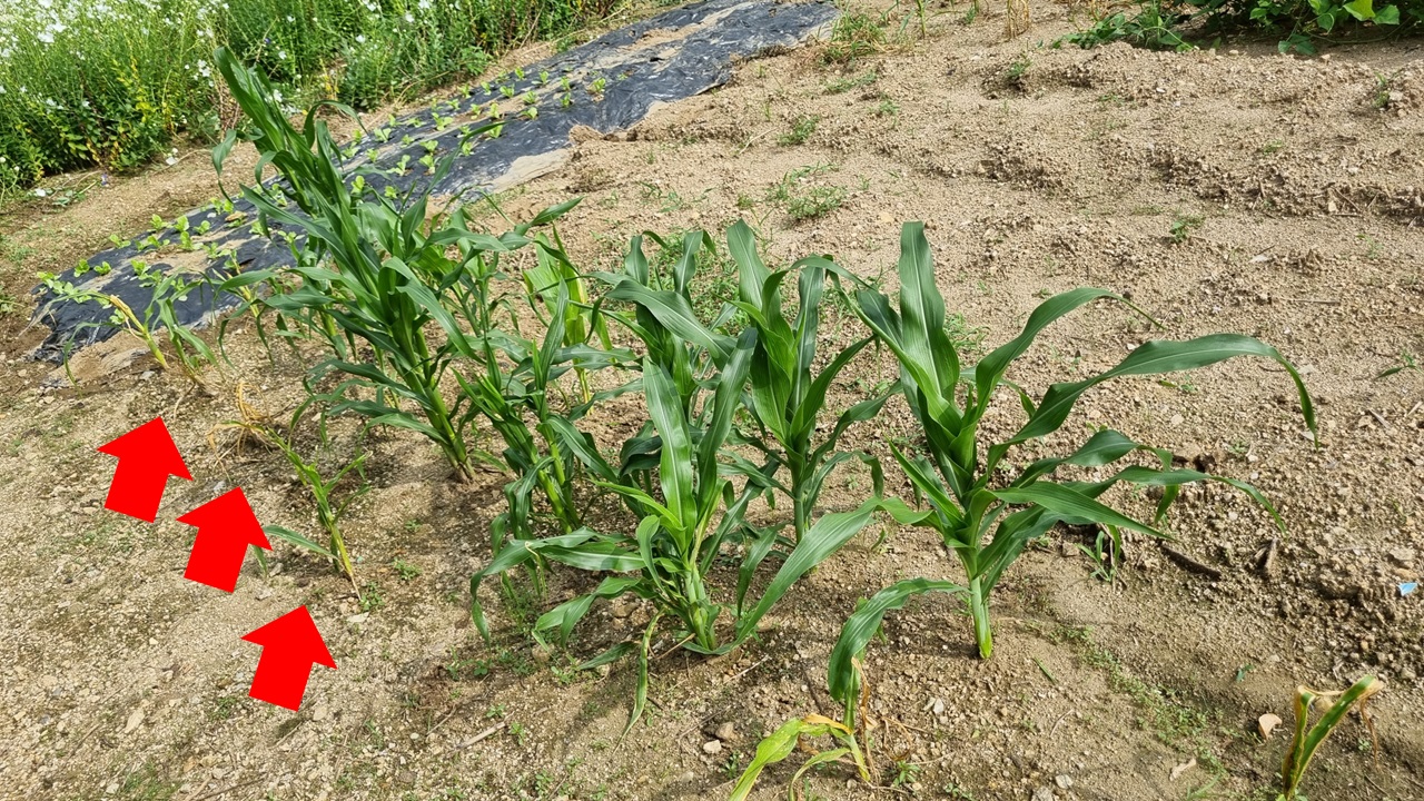 - 그렇다면 모든 옥수수가 다 죽어야 되는 거 아닌가?! 분명 제초제(농약)가 날려서 농약 묻은 옥수수만 죽은 것이라고 짐작만 할 수 있다. 하~ 요즘에 풀만 죽이는 제초제도 많던데....