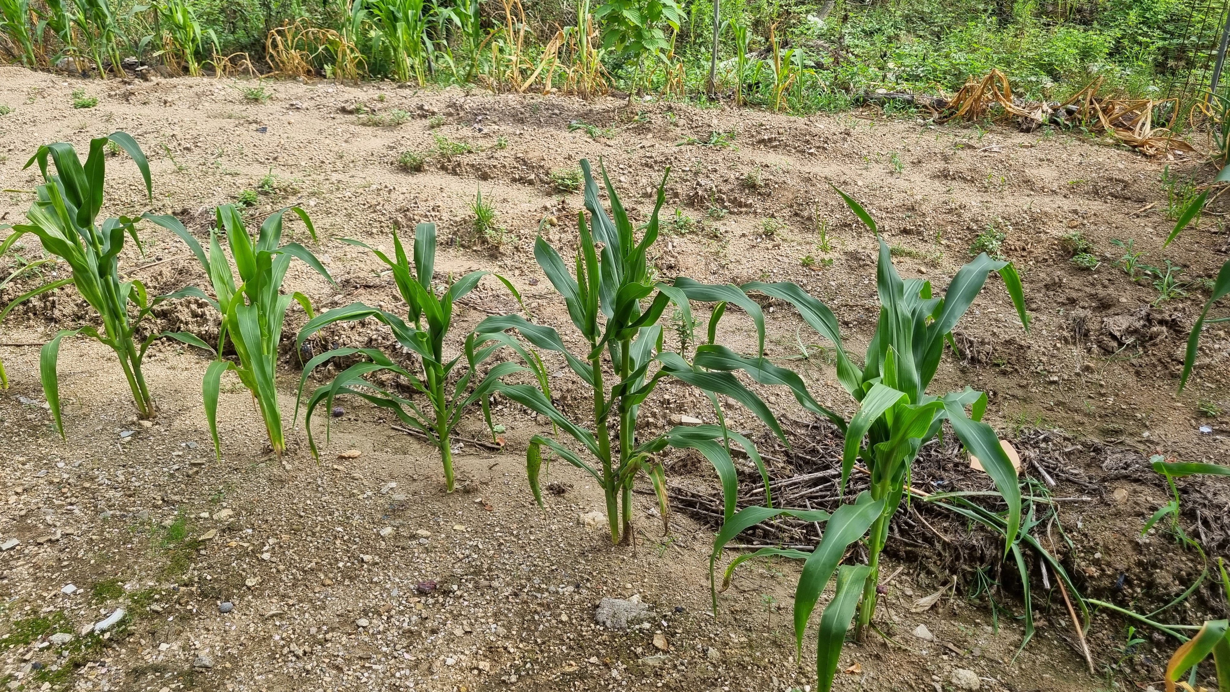 그렇다면 나에게 좋은 생각이 있었다. 죽은 옥수수는 뽑고 그 자리에 멀쩡히 살아 있는 옥수수를 하나씩 뽑아서 옮겨 심으면 더 많은 옥수수를 수확할 수 있을 것이라 생각했다. 그러니깐 지난 글에서 옥수수 솎아 주기 할 때 3~4개씩 남겨둔 옥수수를 2개씩만 뽑아서 옮겨 심어도 될 것 같았다. 하지만 나의 좋은 생각도 무산되고 말았다. 옥수수 꽃대가 나오기 시작하면 이미 늦었다고 하셨다. 부질없는 짓이라고.