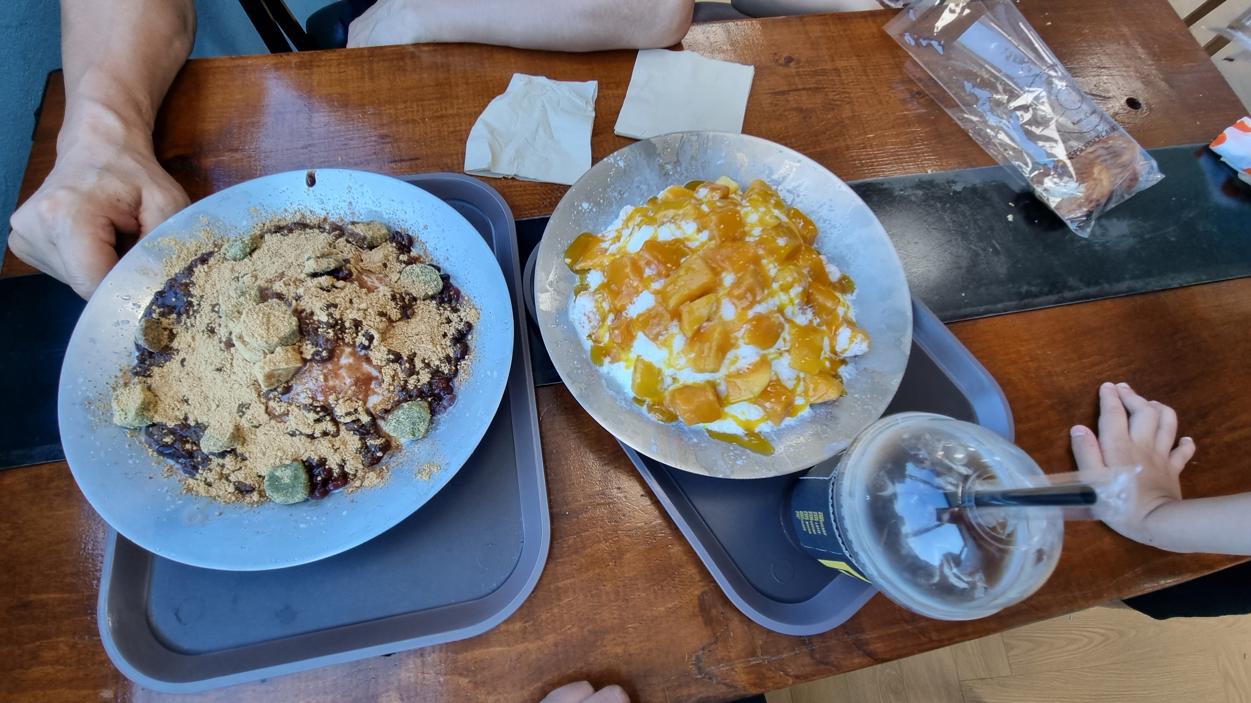 망고 빙수, 팥빙수, 아이스 아메리카노를 주문했다.