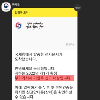 7, 8월은 물놀이의 황금 시즌이다. 즐겁다. 바다도 가고 계곡도 가고 아주 신났다. 그런데 자꾸 홈텍스에서 알림이 온다. 귀찮다. 뭔지도 모르겠고 그냥 무시했다. 놀자!! 먹고 놀고 마시고 즐기고~