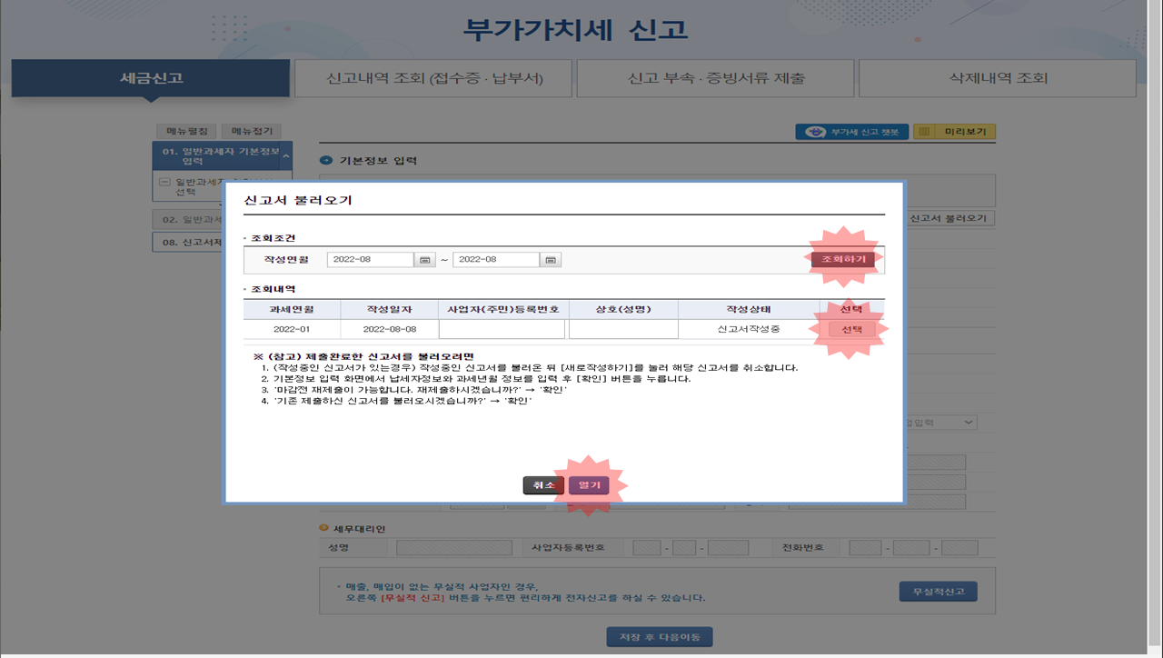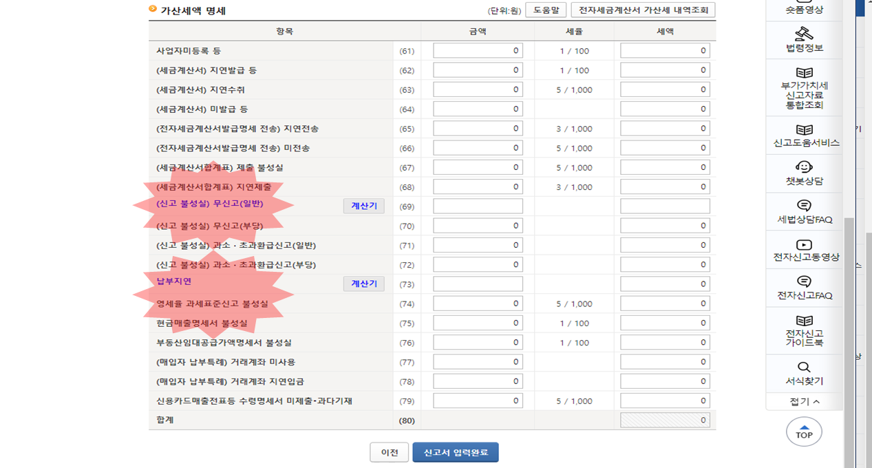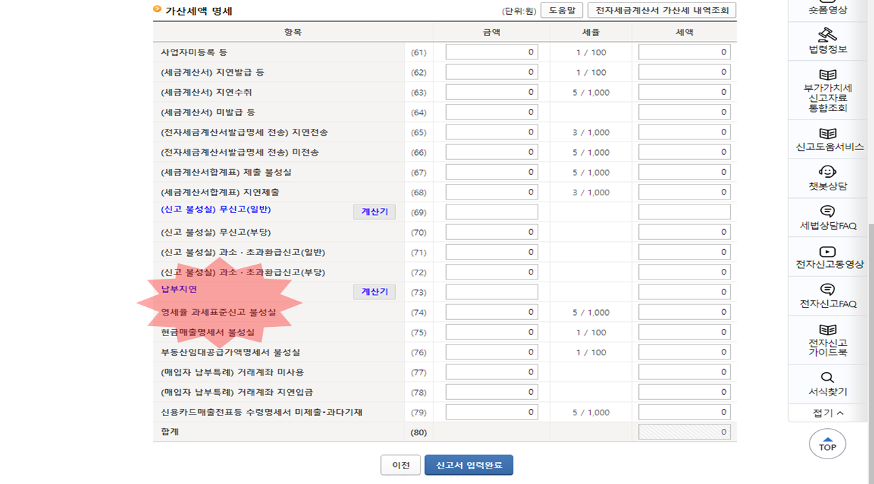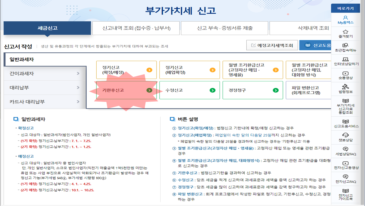 기한후 부가세 신고 방법(셀프, 일반과세자, 무신고, 납부지연 계산)