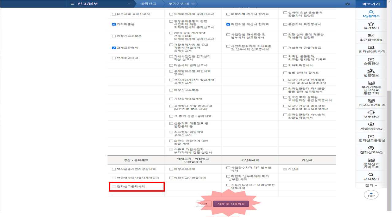 그리고 경감, 공제세액에서 전자신고 공제세액을 선택하면 10,000원을 할인받을 수 있다던데 나는 기한 후 부가세 신고 대상이라 그런지 선택이 되지 않는다.