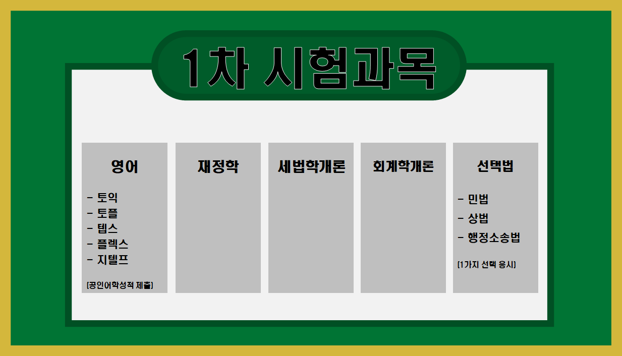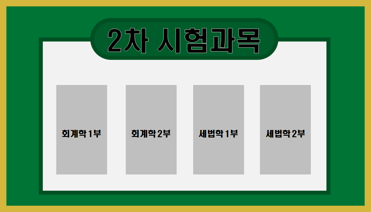 음... 2차 시험과목은 뭔가 익숙하긴 한데 정확히는 모르겠고 대충 돈 계산과 법인 것 같다.