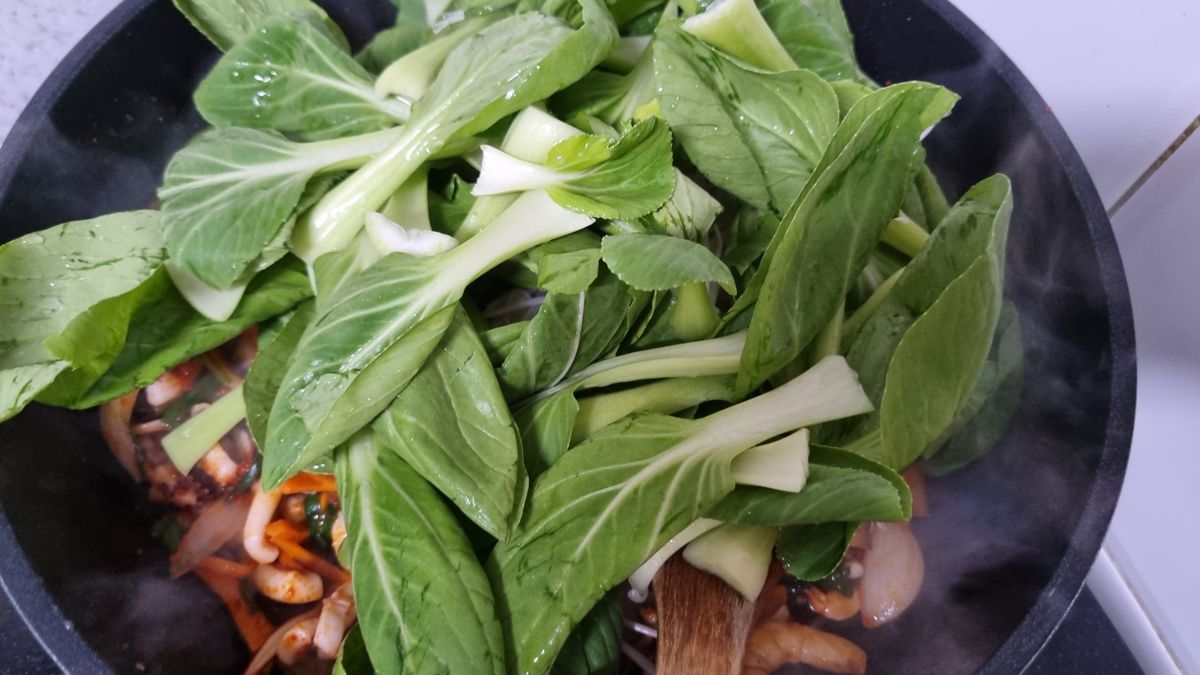 청경채도 넣어 준다. 불을 켜지 않아도 남은 열로 충분히 청경채의 숨이 죽는다.