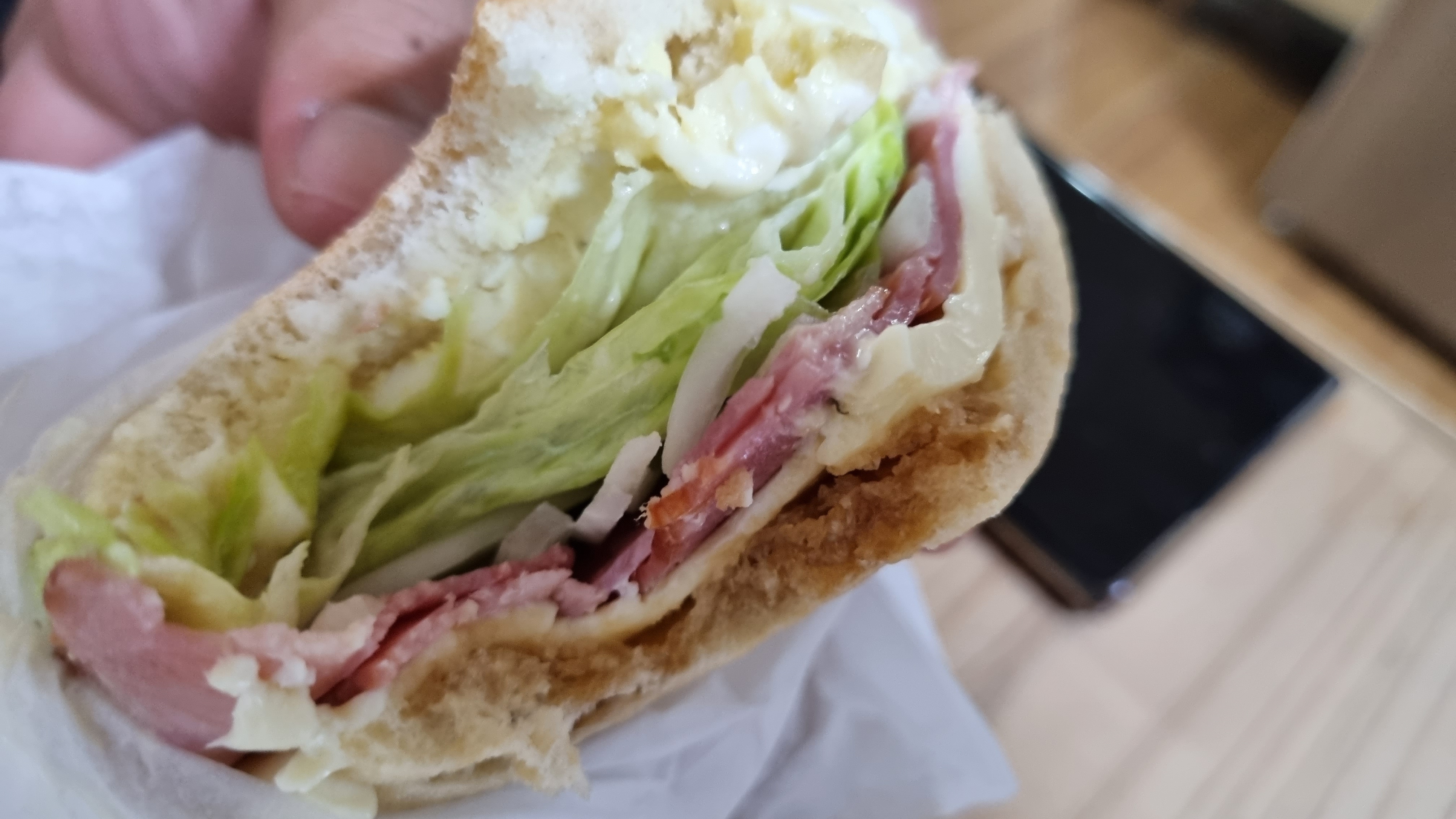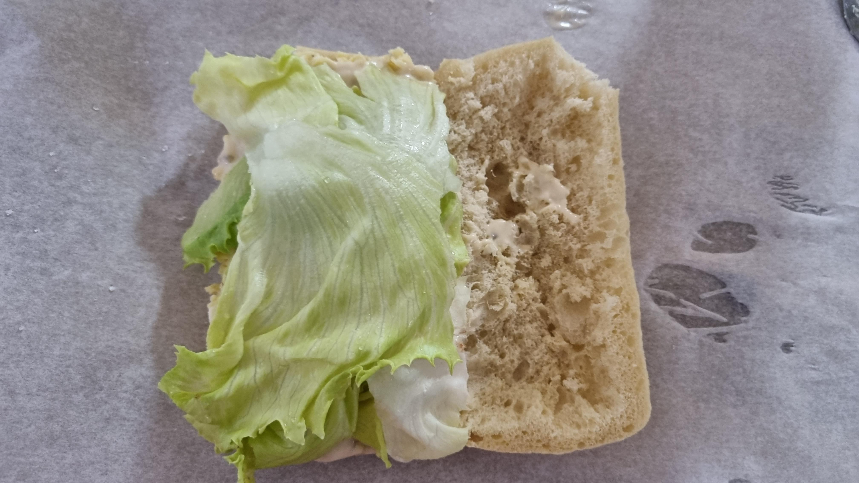별로 좋아하진 않지만 그래도 양상추를 넣었다. 그나마 양상추가 있어야 퍽퍽하지 않게 먹을 수 있다.