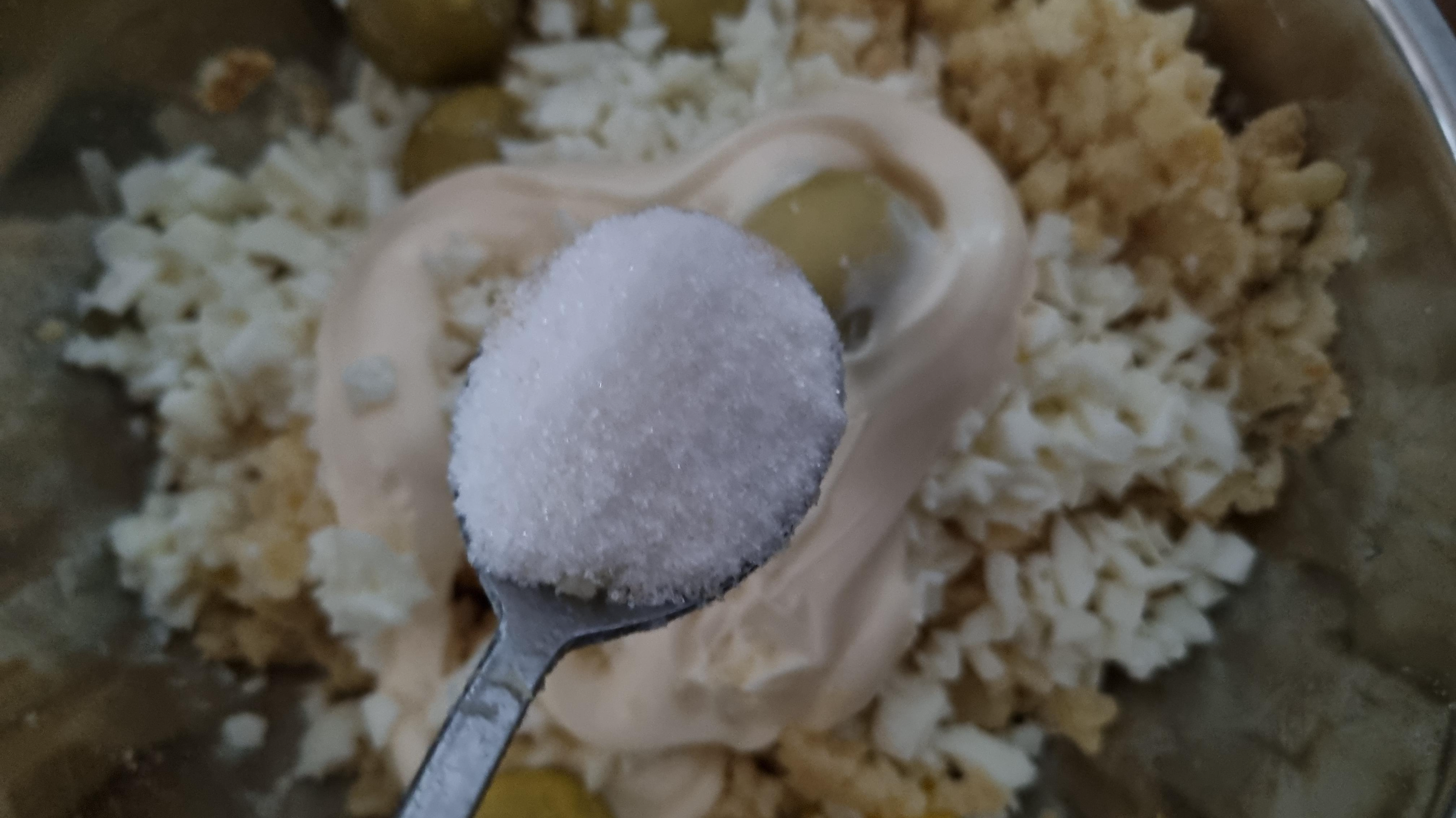 설탕 한숟가락 추가. 마요네즈를 넣었다.