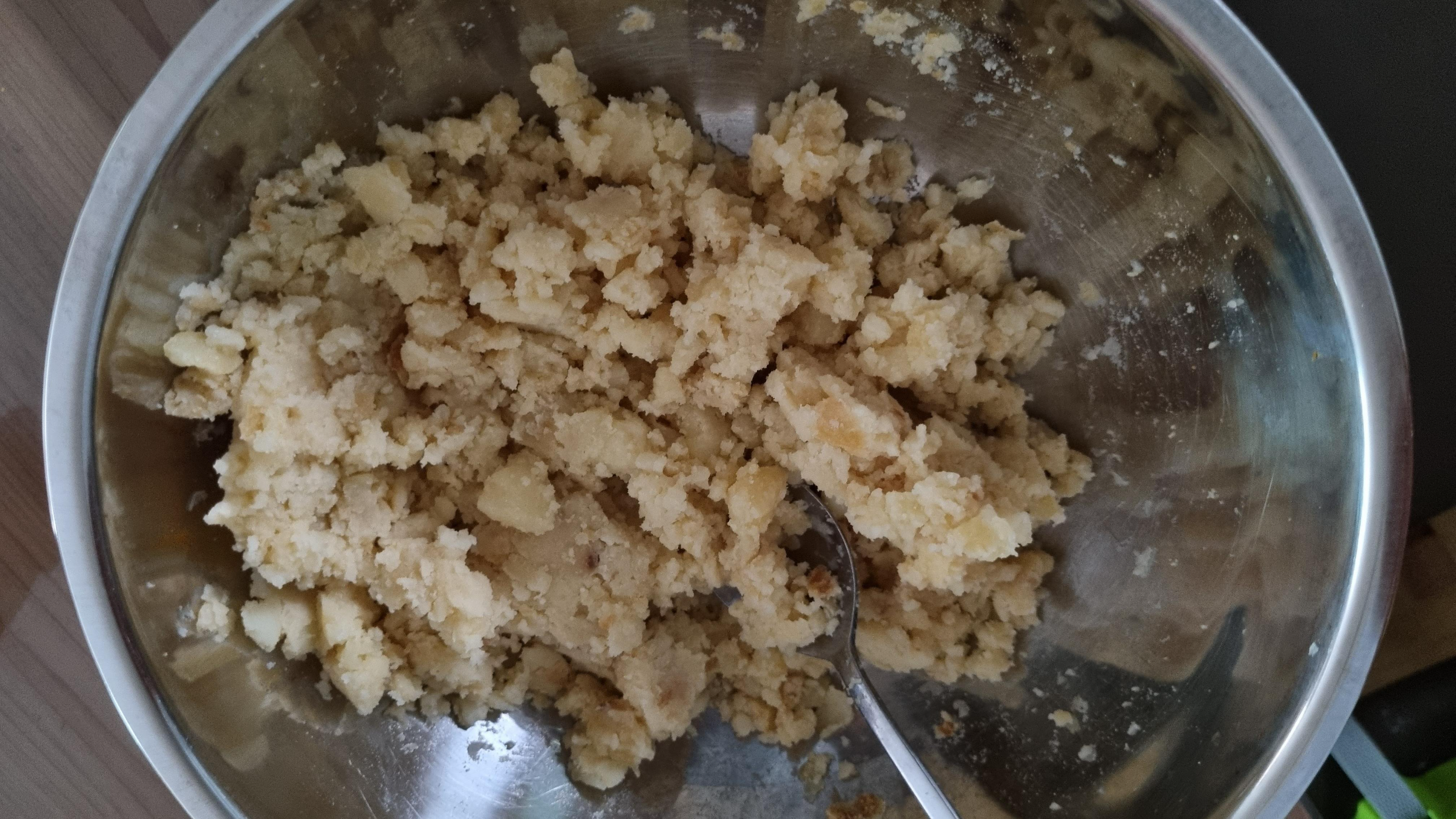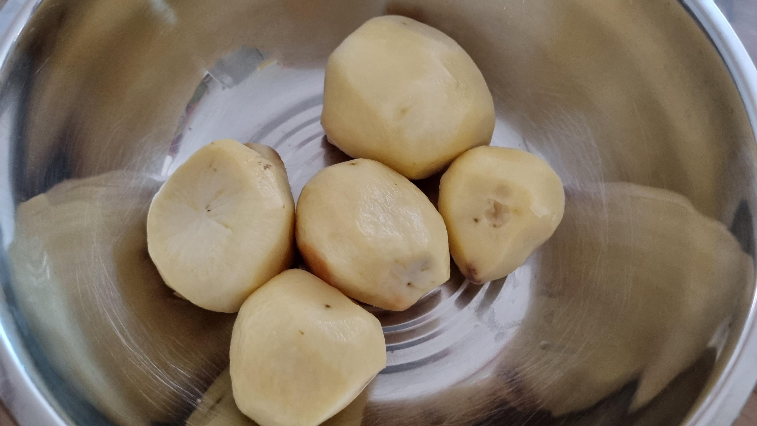 감자를 으깬다. 뜨거울때 으깨야했는데 차가우니깐 쉽게 부서지지 않는다.