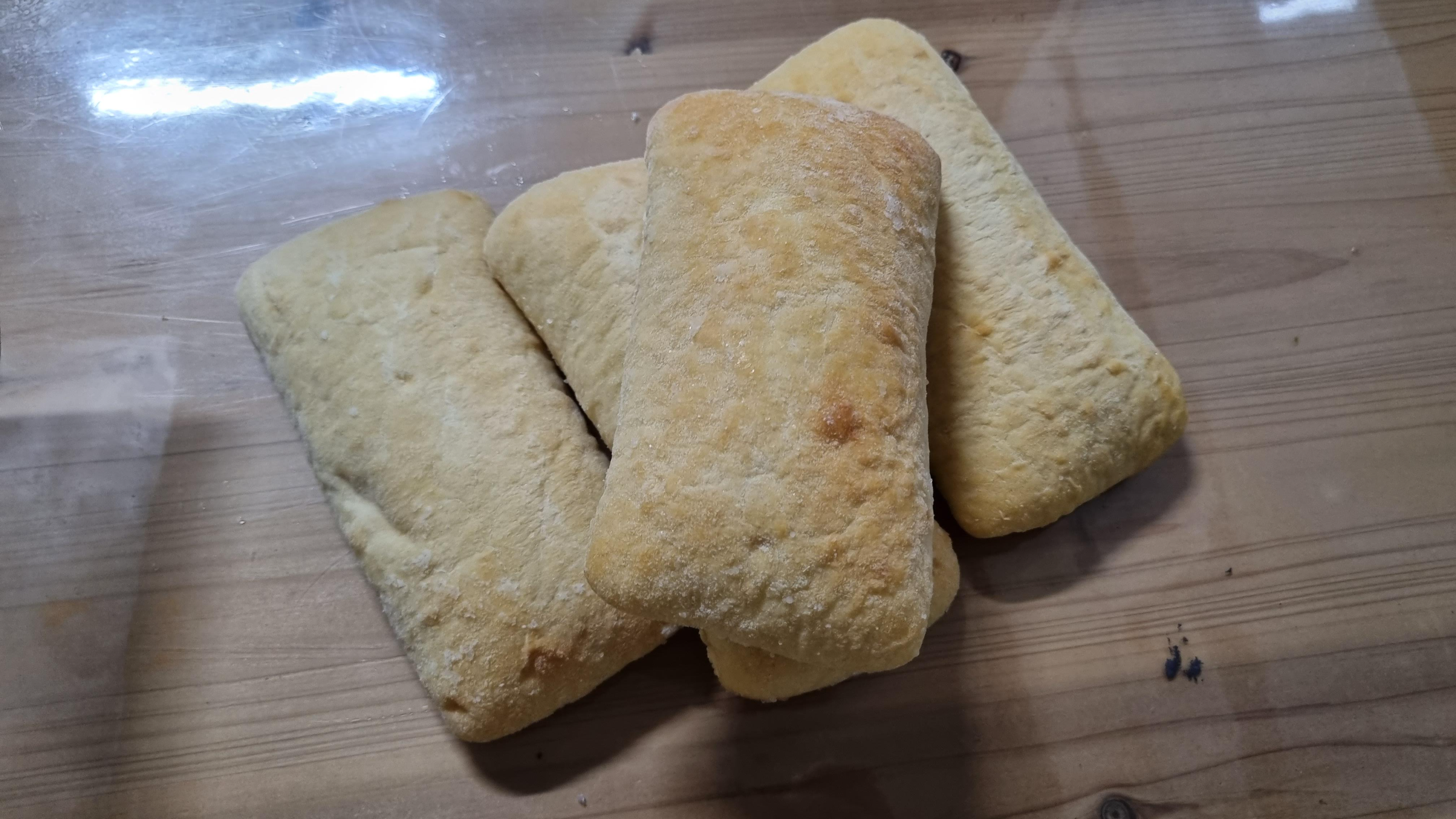 모양새가 바게트와 비슷한 식감과 맛을 낼 것 같아서 대량으로 구매했는데 그렇지 않다. 겉은 질기고 단단하다. 속은 매우 푸석거린다. 모든 치아바타 빵이 푸석거리진 않을 것이다. 속이 쫀득하고 부드러운 치아바타도 있다고 하는데 내가 산 치아바타는 별로.