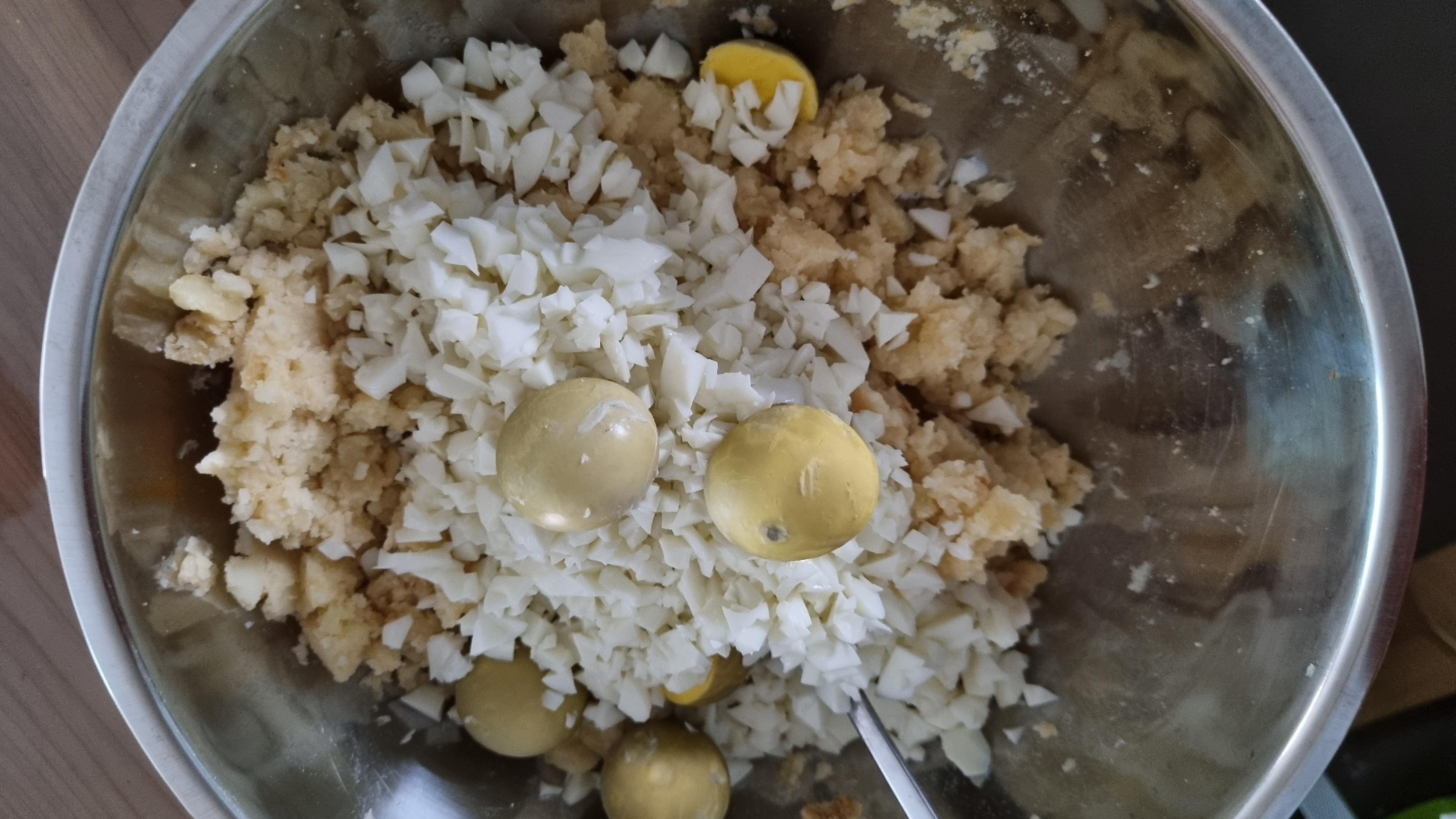 감자를 으깬다. 뜨거울때 으깨야했는데 차가우니깐 쉽게 부서지지 않는다.