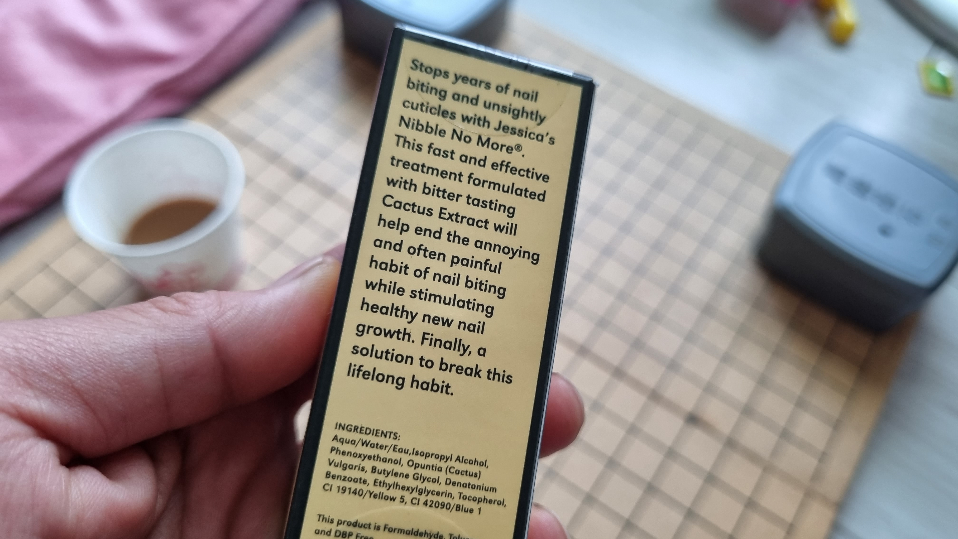 아무튼 '제시카 니블 노 모어(JESSICA Nibbel No More)'을 통해서 보기 흉한 큐티클과 손톱 깨물기를 막을 수 있다. 선인장 추출물로 인체에 무해하고 어린아이도 쓸 수 있다. 마지막으로, 이 습관을 깨는 설루션이라 한다.