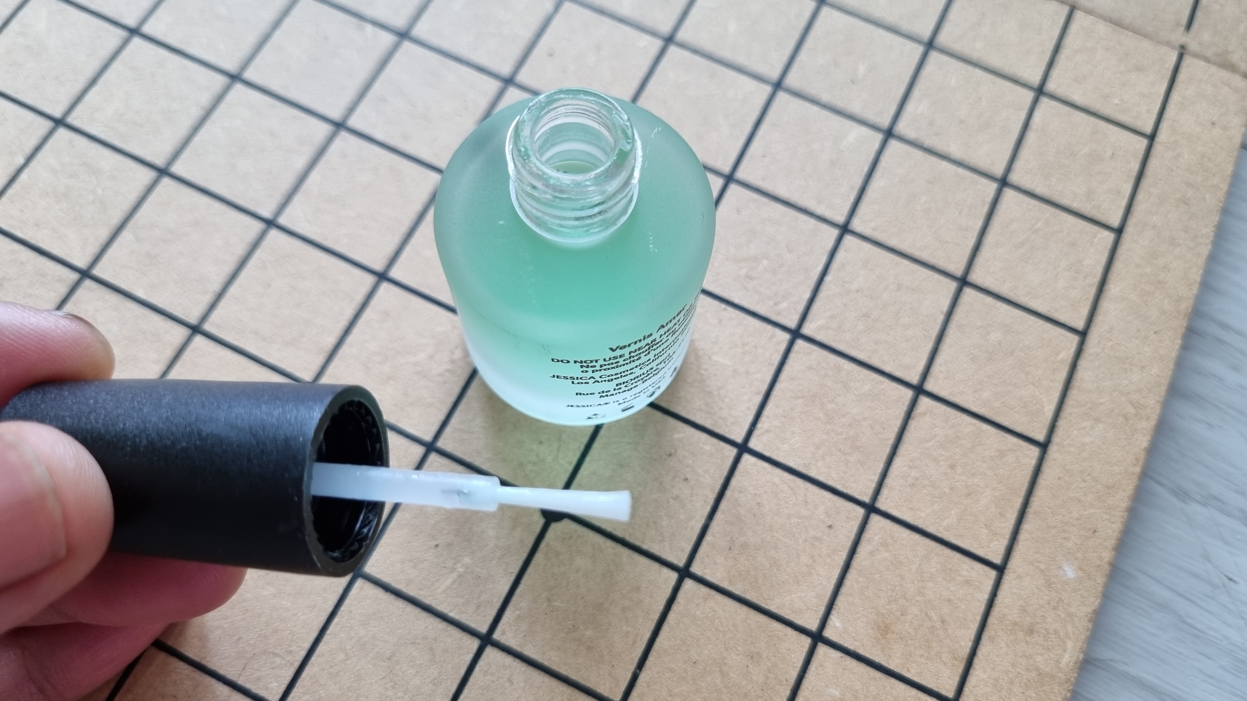 생긴 건 매니큐어처럼 생겼지만 완전 물이다. 끈적임도 전혀 없고 끈적 거림도 없다. 바르고 10초가 지나면 거의 마른다. 하지만 예민한 아이에게, 특히나 촉각에 예민한 아이에게 이 약을 바르기는 쉽지 않다. 처음엔 그냥 바르더니 이 '제시카 니블 노 모어(JESSICA Nibbel No More)'의 맛을 보면 그다음엔 전혀 호의적으로 바르지 않는다.