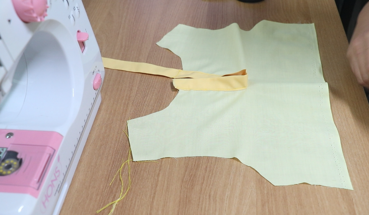 몸판 원단을 돌려서 선이 일직선이 되게 만든다. 그리고 덧 델 원단에 끼워서 미싱으로 박는다. 그냥 쭉~~ 박으면 된다. 정말 쉽게 할 수 있다.