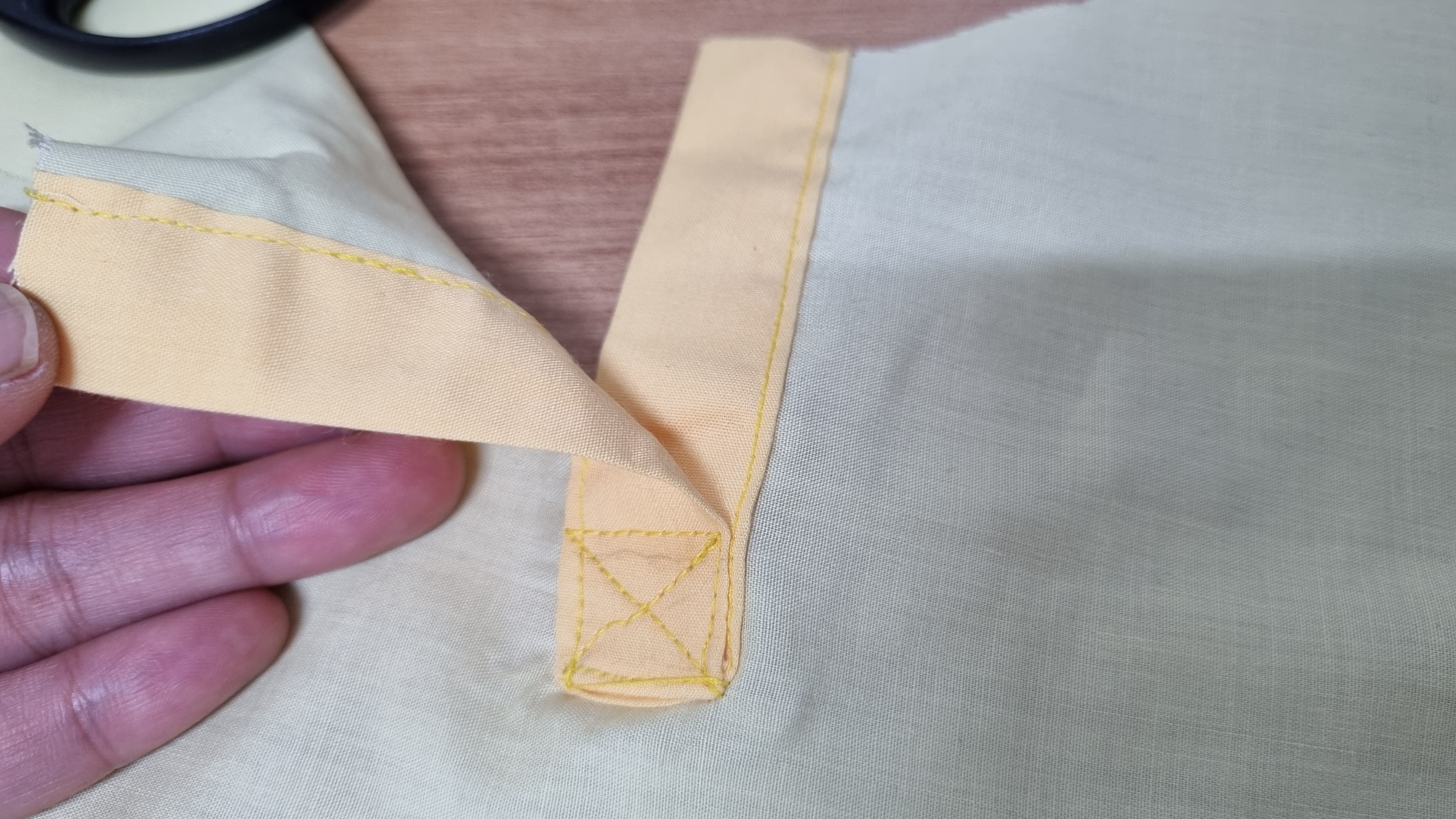 위의 사진과 같이 끝을 잘 접고 다림질 했다.
