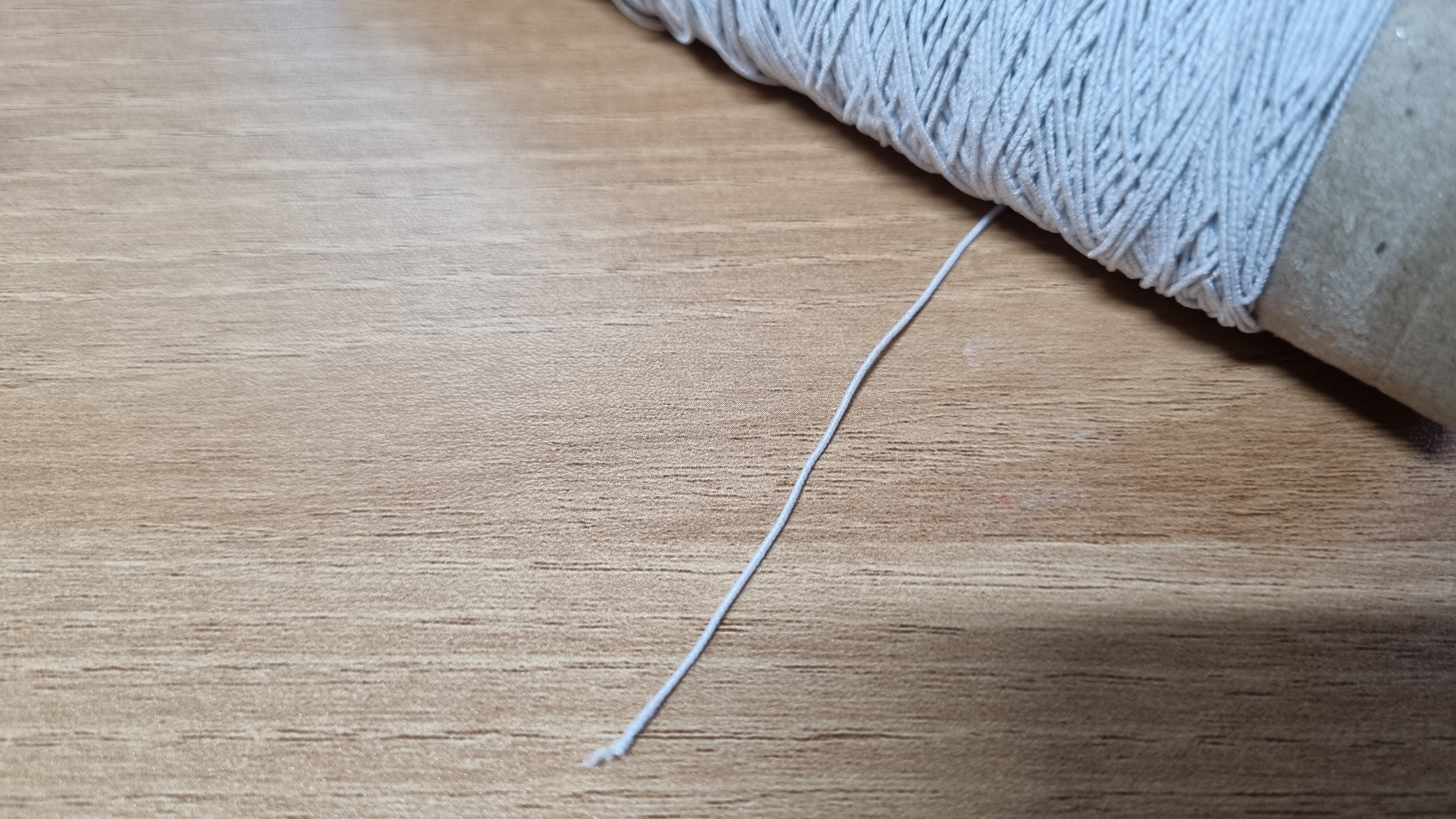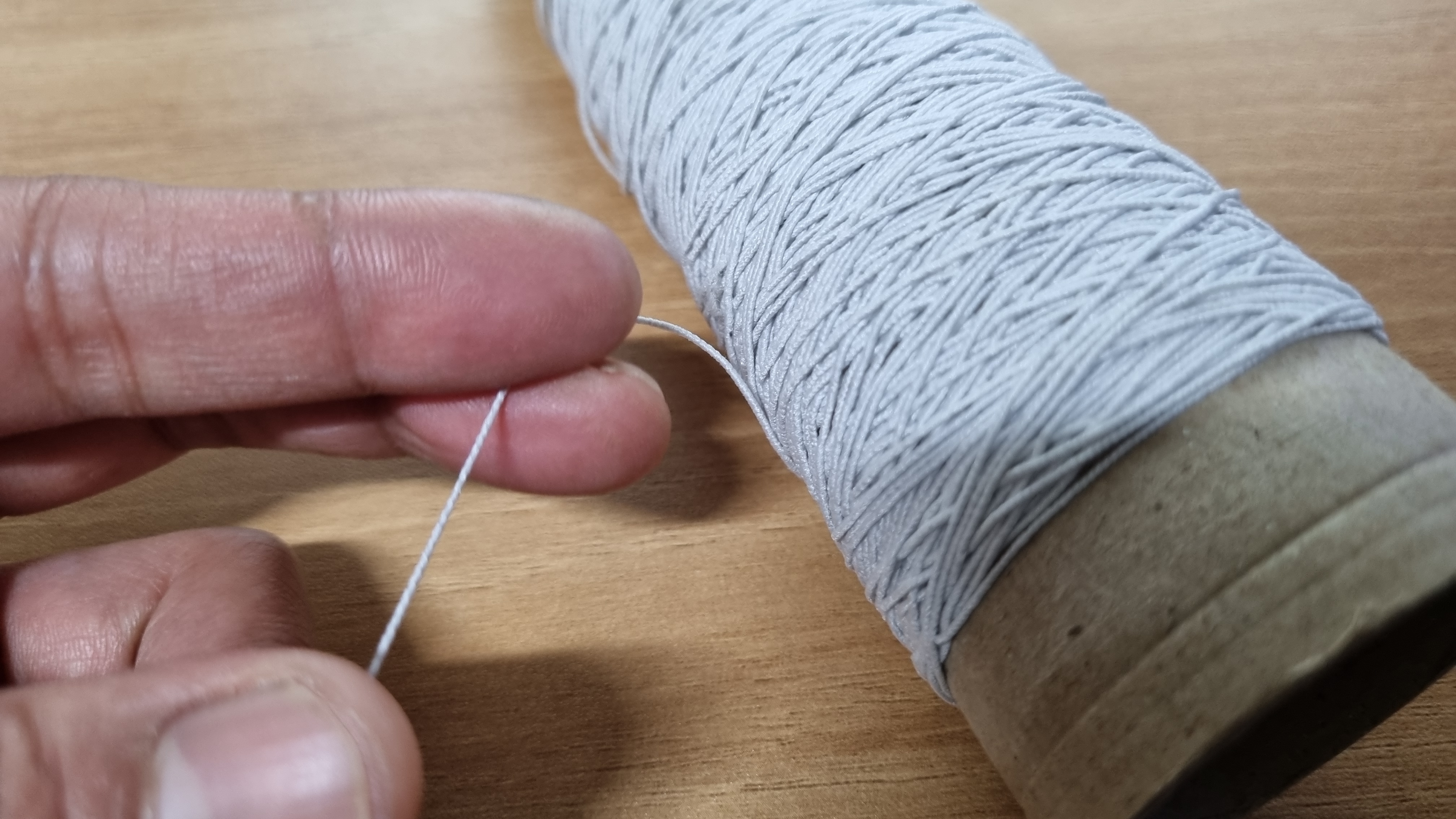 위 사진도 고무줄 실이다. 탑 원피스 만들 때 상의 밴딩 부분에 넣는 고무줄이다. 이것도 보통 수고스러운 게 아니다.