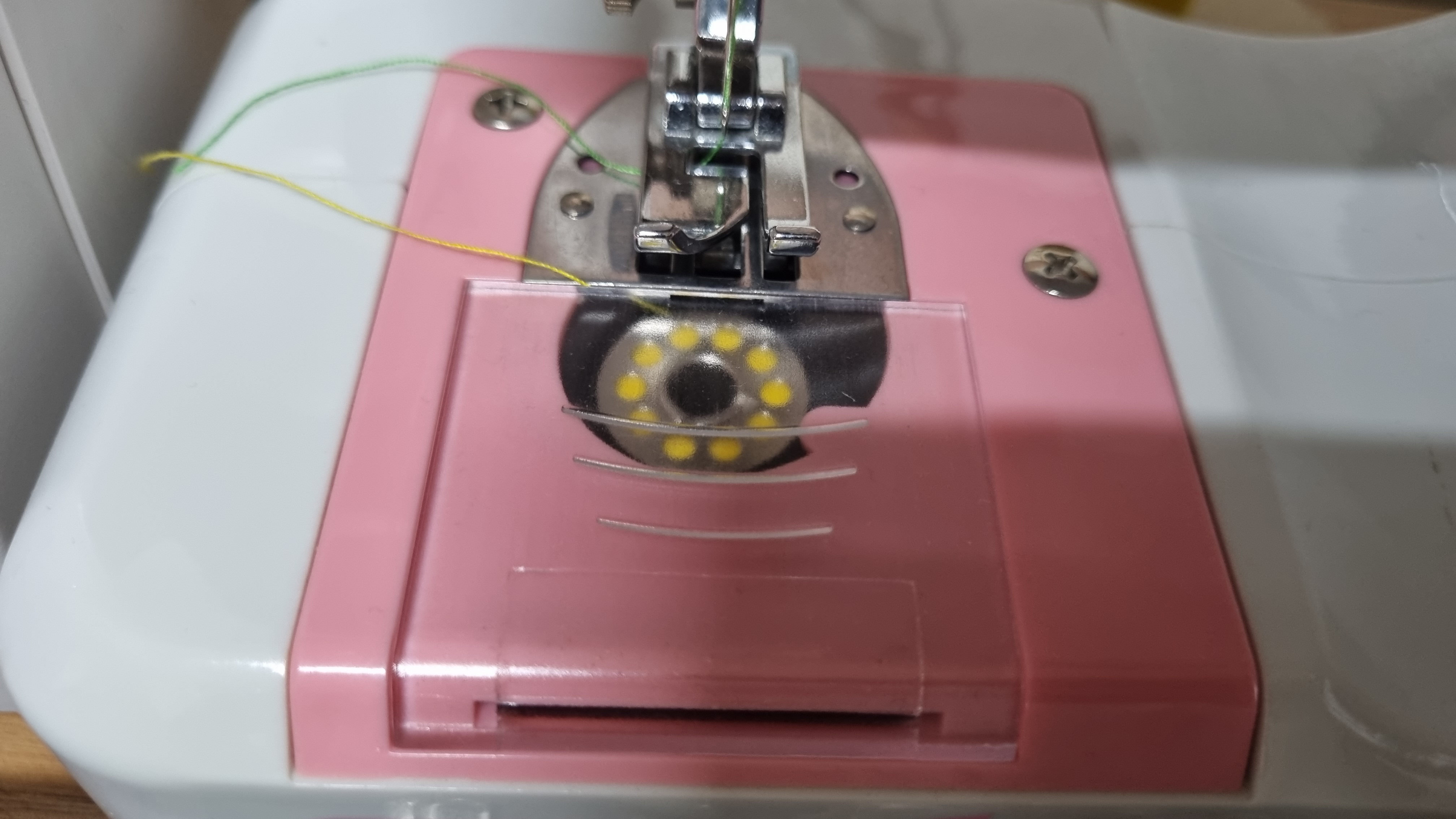 지금껏 5년 가까이 미싱을 사용했지만 보빈이 파손되는 경우는 한 번도 없었다. 그래서 보빈 파손으로 인한 밑실 끊어짐은 없었지만 잘못된 보빈 사용으로 밑실이 계속 끊어지는 현상이 있었다. 아마도 필자와 같은 사람은 없겠지만 필자는 밑실 감기 귀찮아서 위의 사진과 같은 실을 보빈에 따로 감지 않고 그냥 사용했다. 그때는 독학으로 미싱을 시작하는 단계라 왜 밑실이 끊어지는지도 몰랐다. 계속 그리고 또 계속 끊어졌다. 미싱 구매할 때 실 세트에 들어있던 실은 보빈과 같은 모양일지라도 따로 보빈에 감아서 사용해야 한다. 저 플라스틱 그대로 밑실 넣는 곳에 넣으면 안 된다. ㅠㅠ