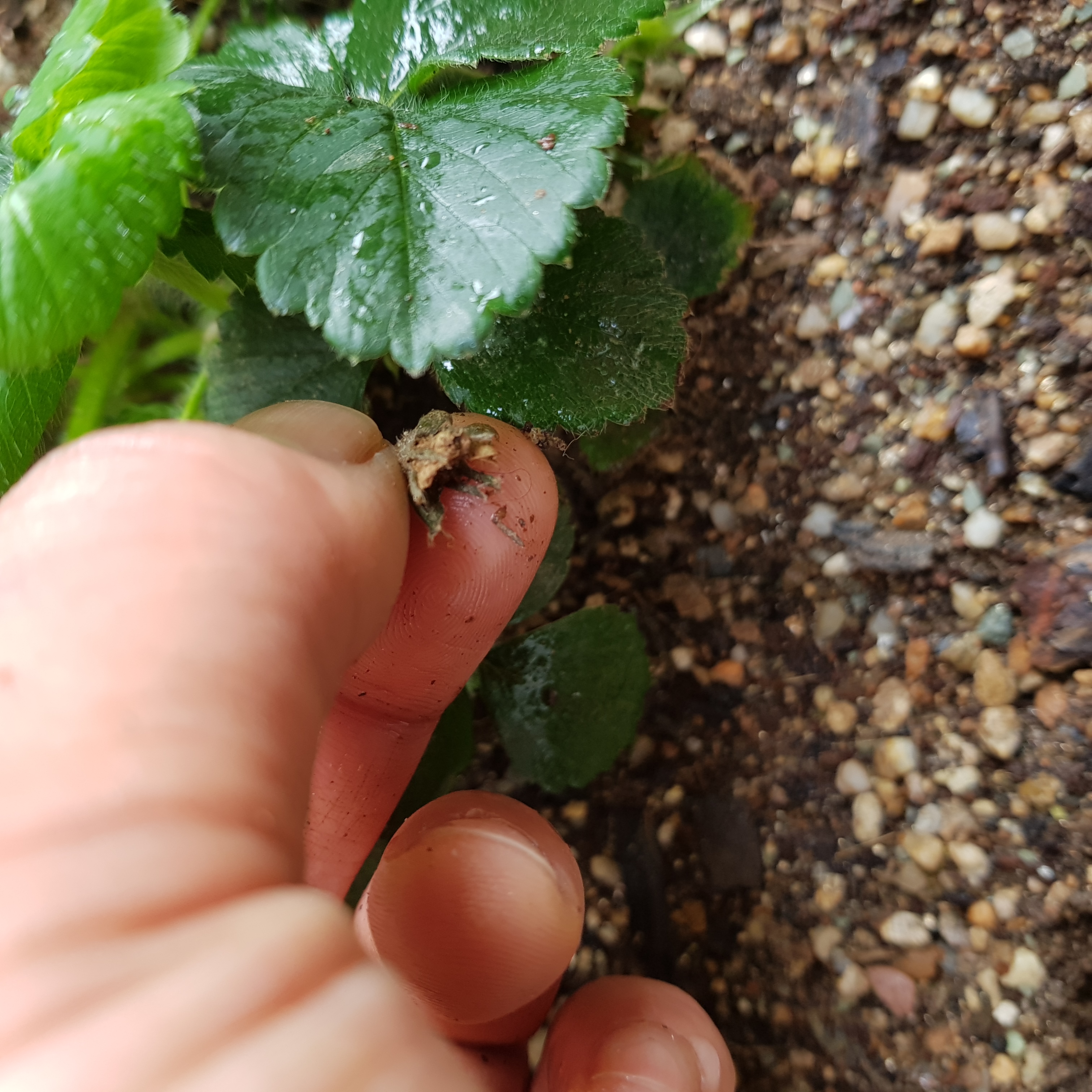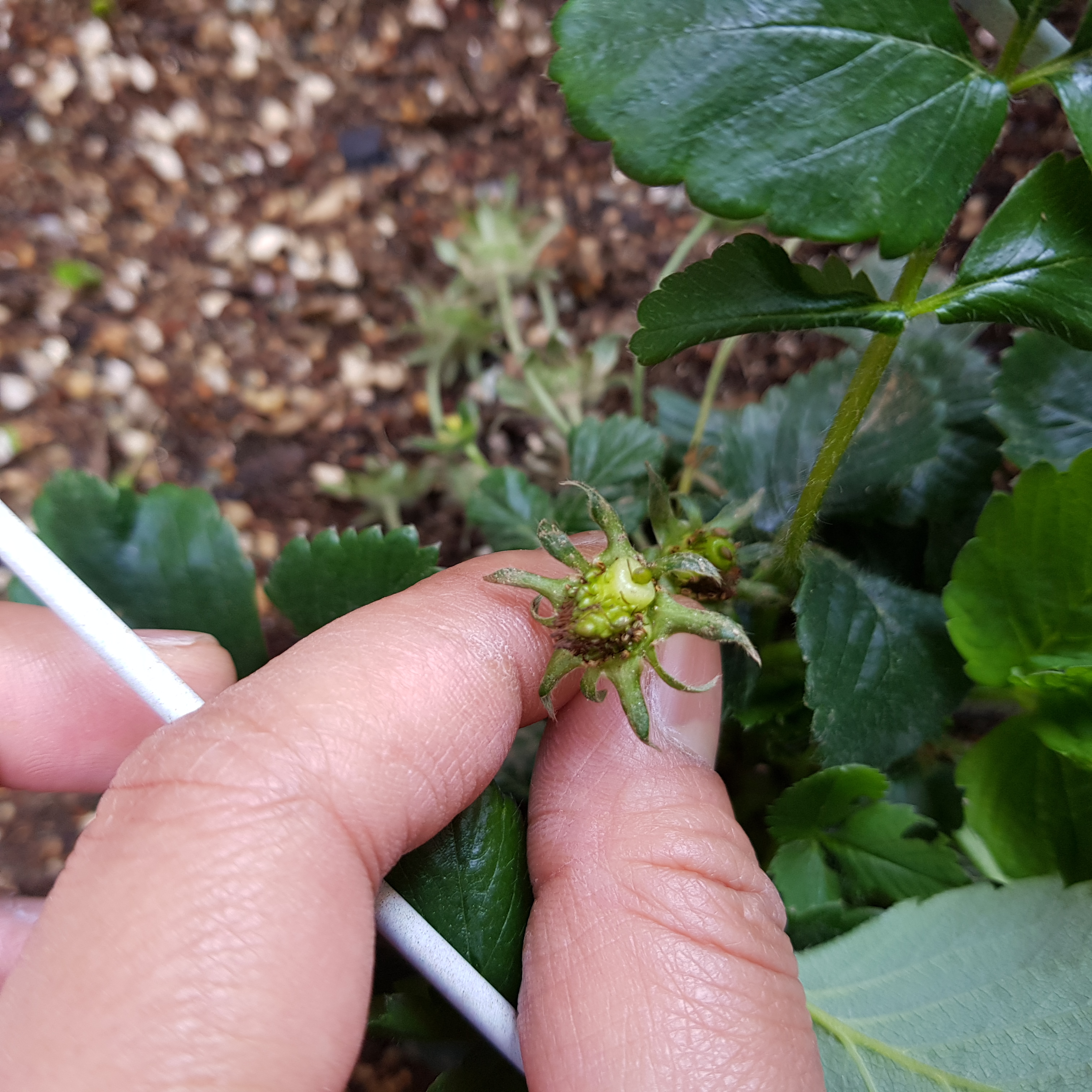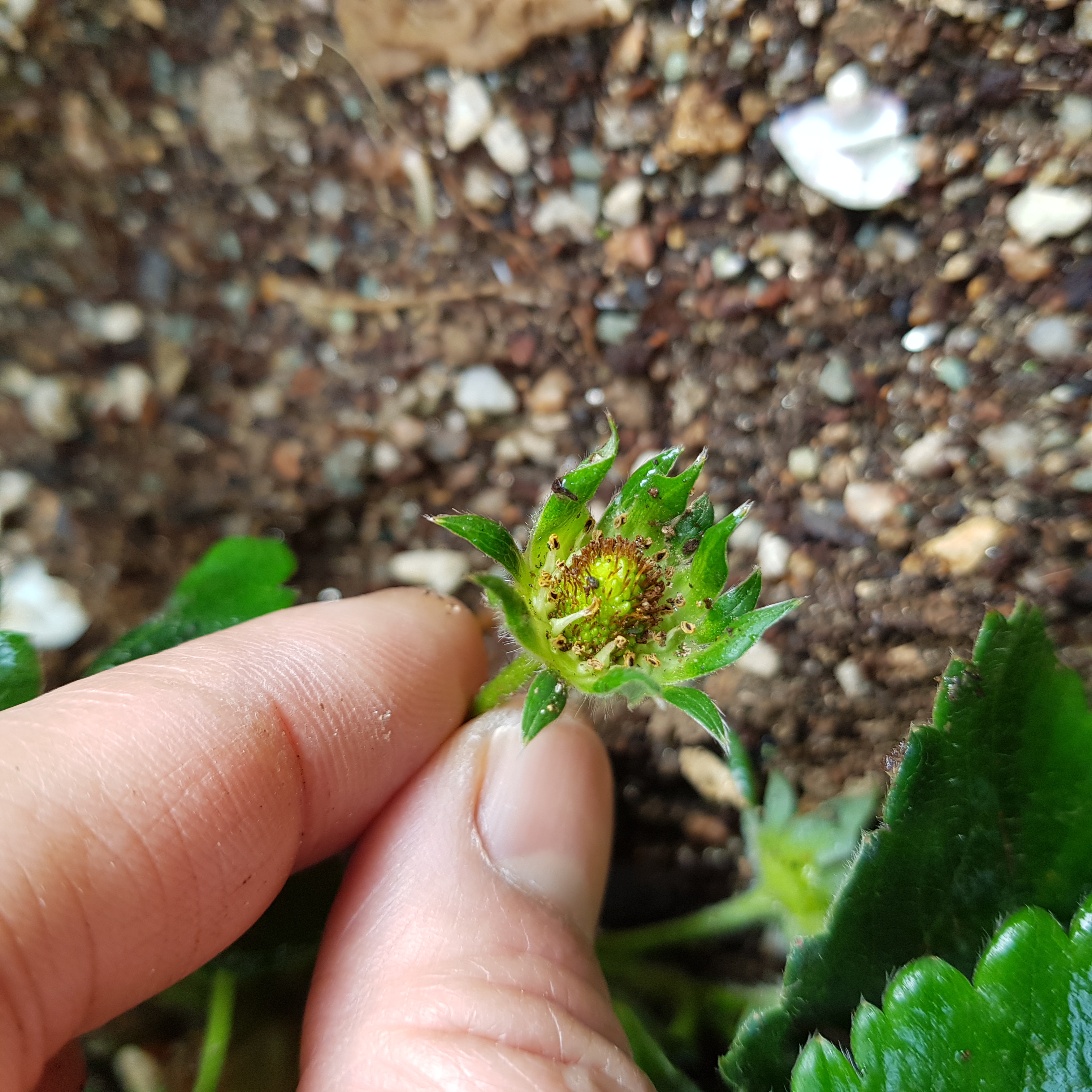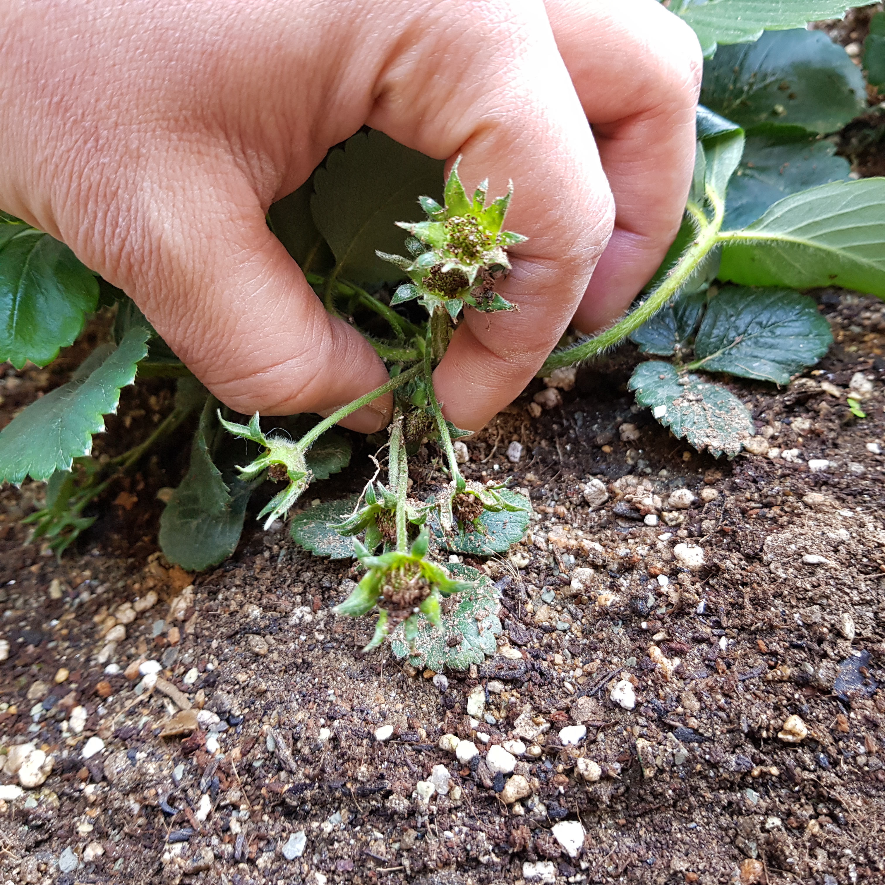 아래 사진은 3번 딸기에서 죽은 꽃받침이다. 이렇게 까맣게 죽은 꽃받침이 3개나 있었다.