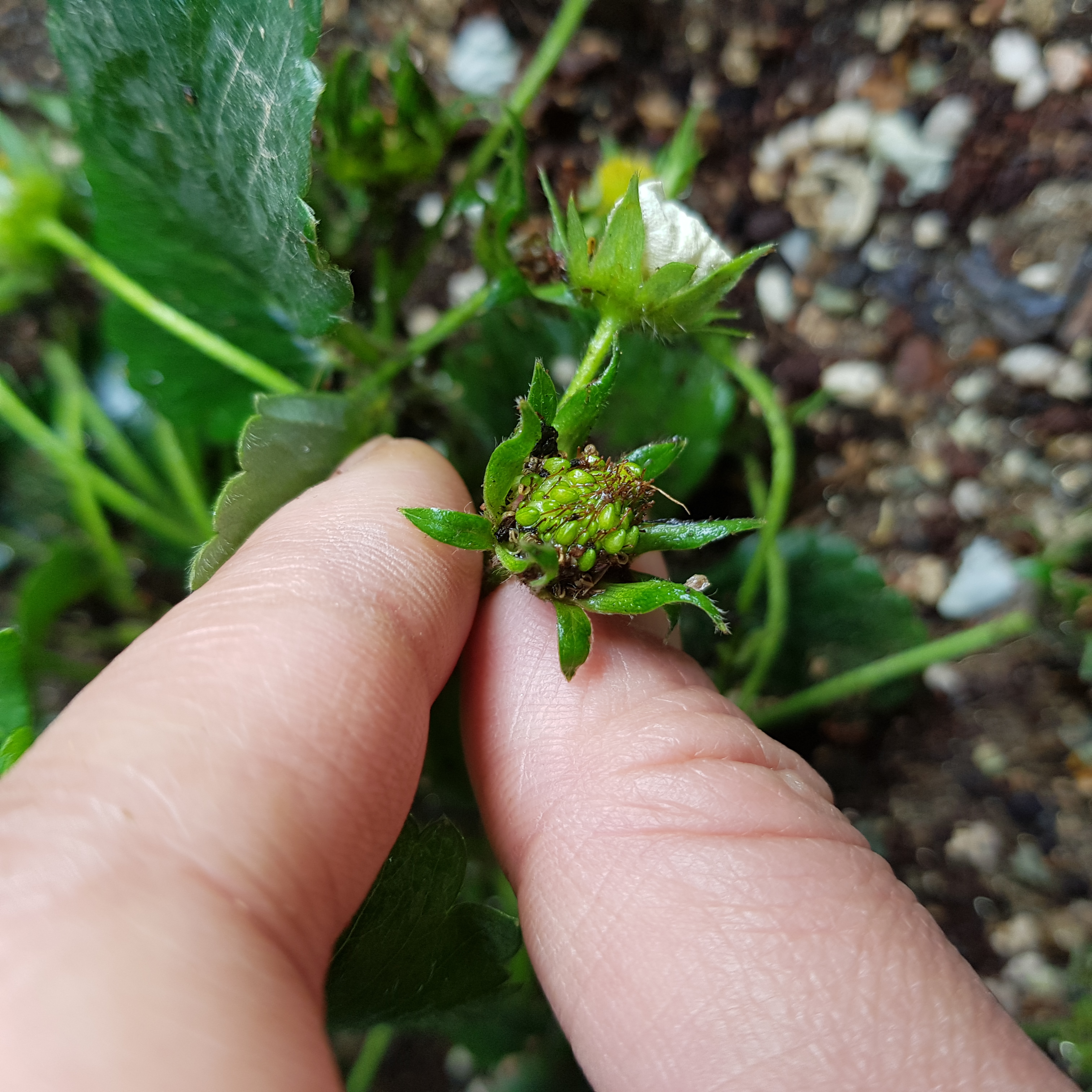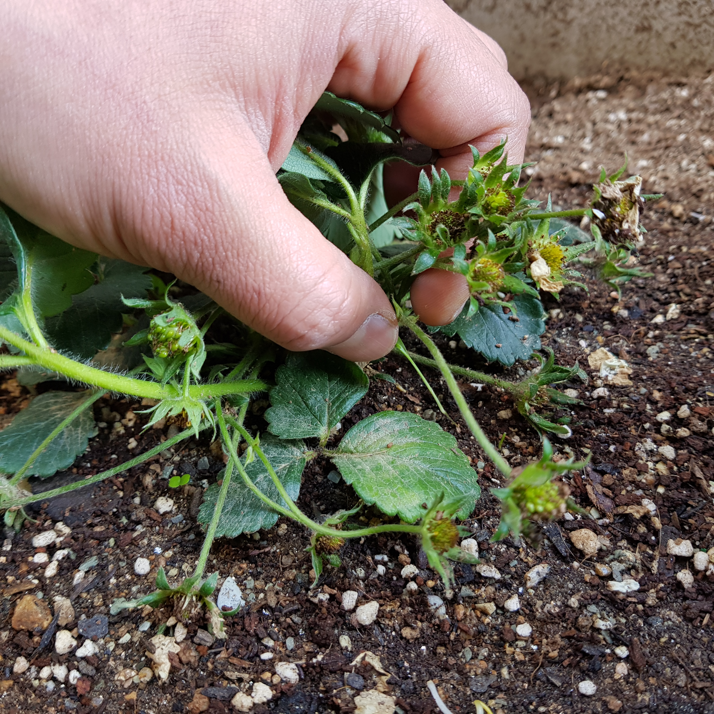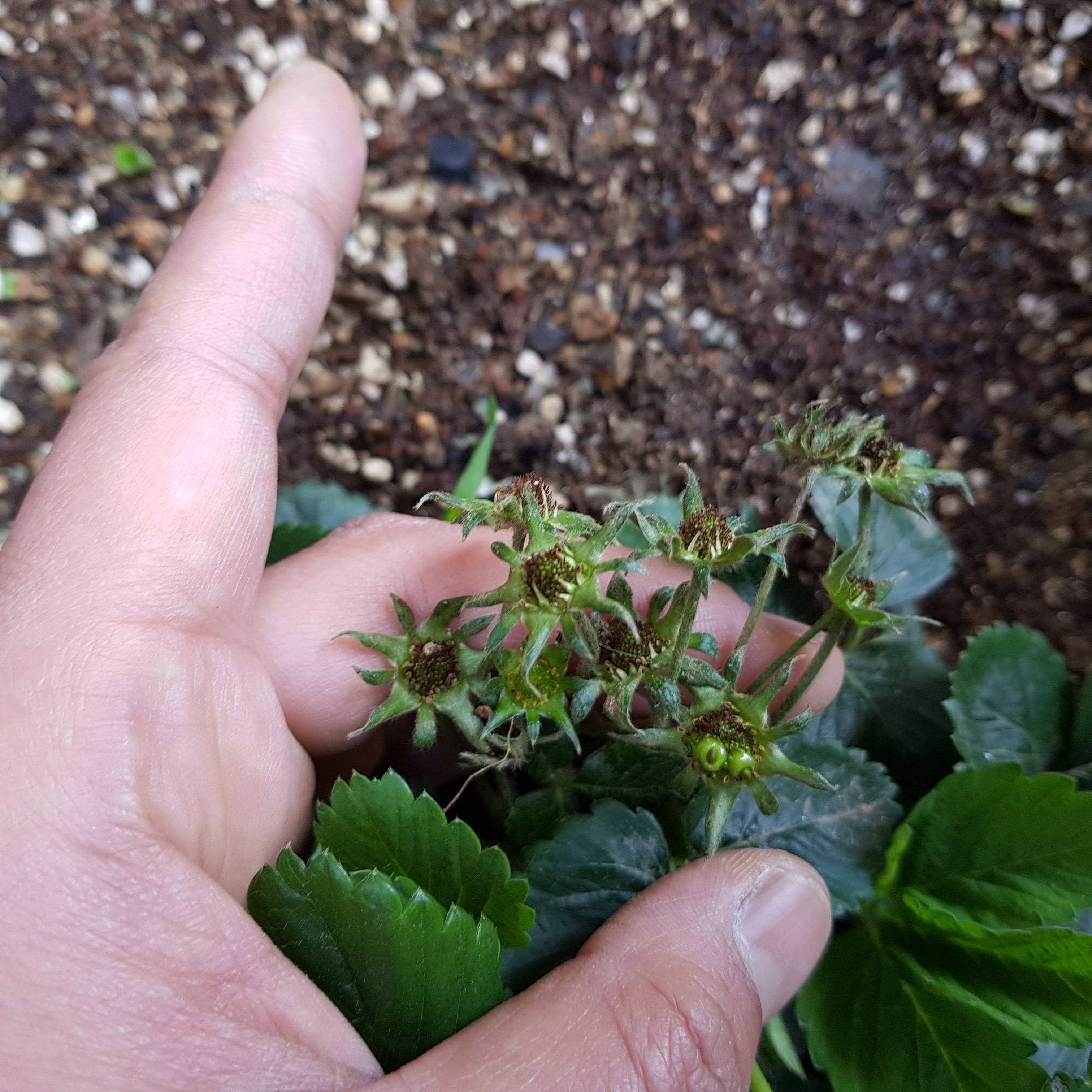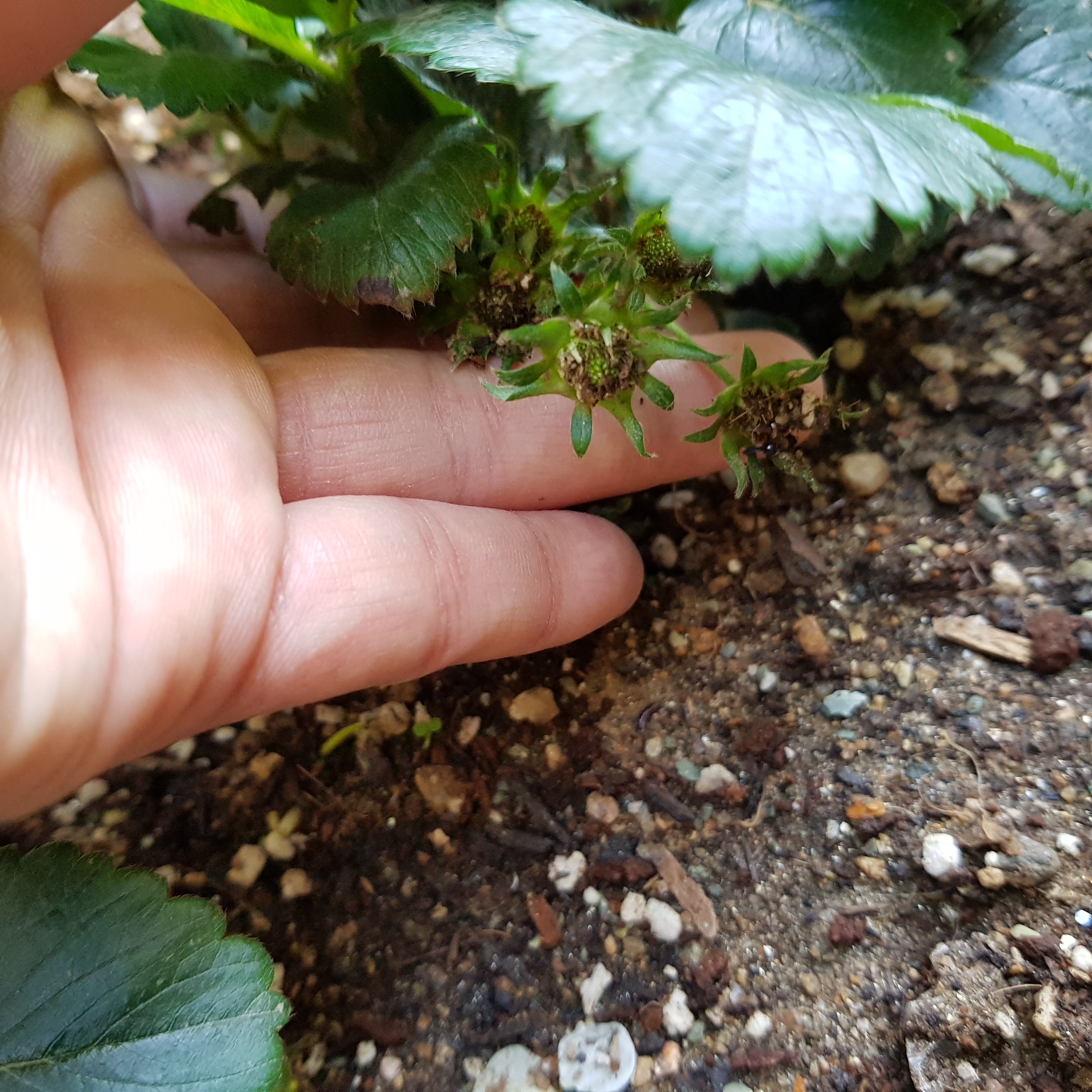 아래 사진은 3번 딸기에서 죽은 꽃받침이다. 이렇게 까맣게 죽은 꽃받침이 3개나 있었다.