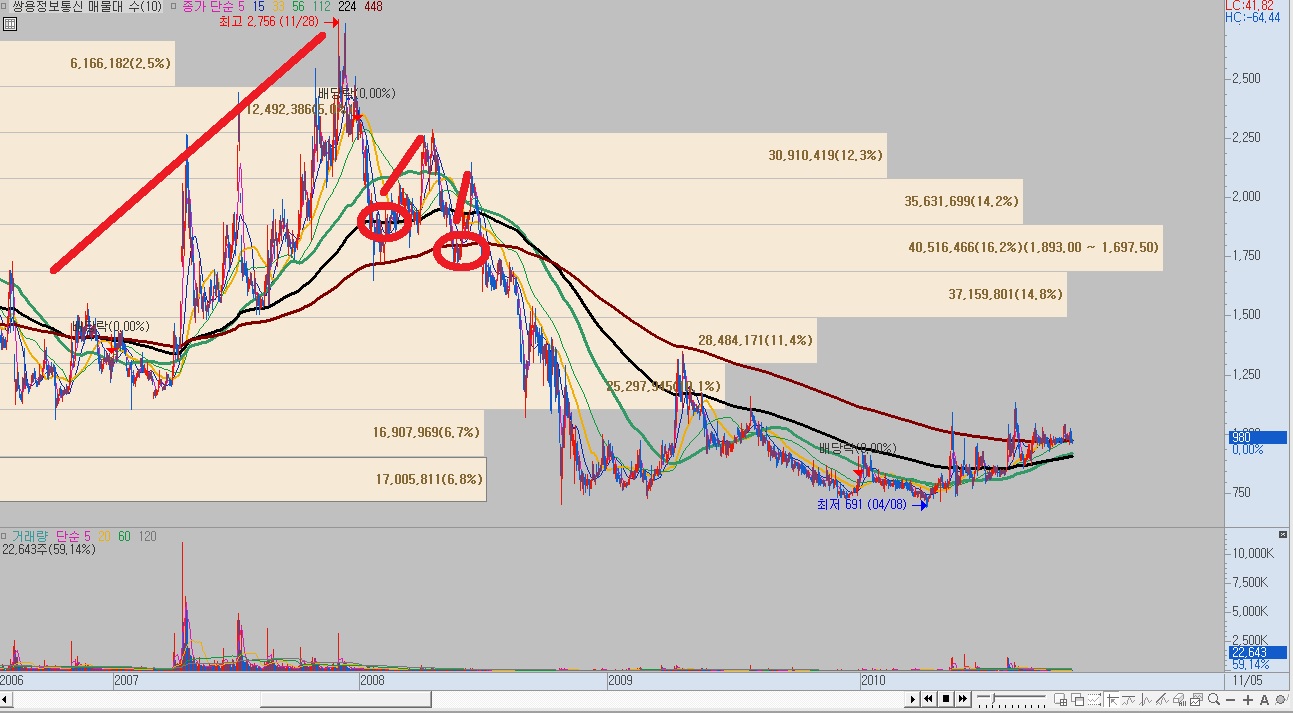 위의 차트에서 굵은 3개의 선이 기술적 반등이 나오는 자리예요.