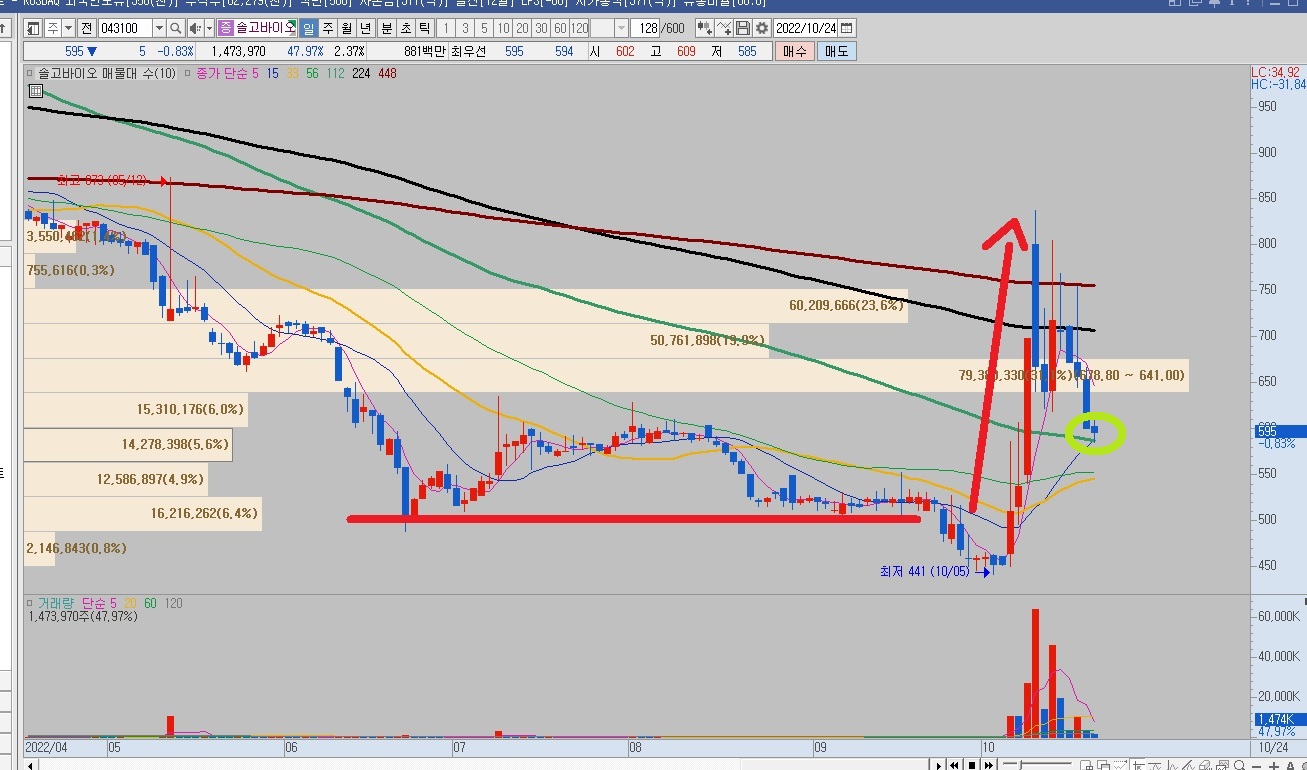 손절은 매물대 쌓여있는 520원 잡고, 매도는 잘 모르겠어요. 주식은 매도가 예술이라고 하는데...