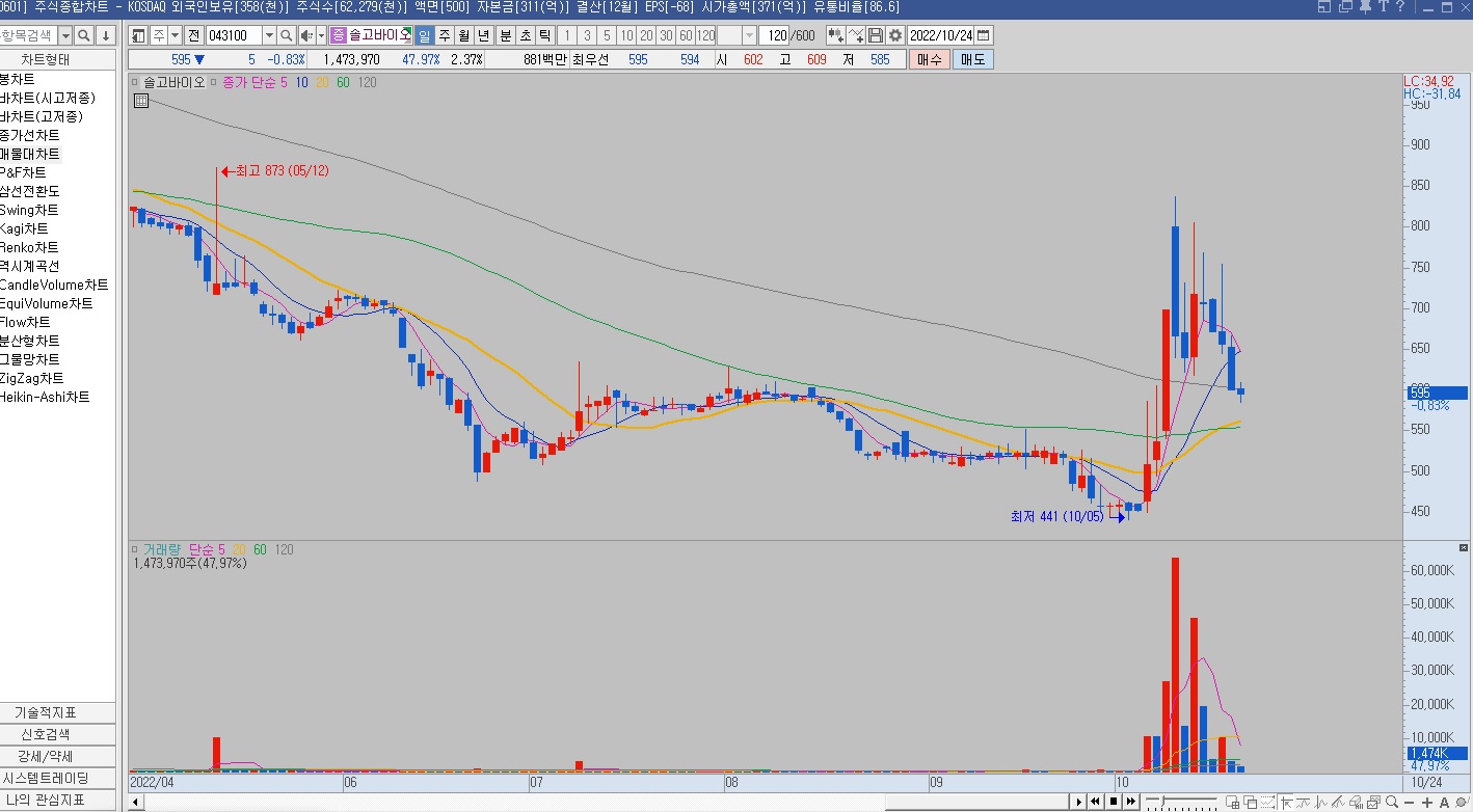 일단 주가가 50% 이상 급등했고, 쌍봉도 아니고 외봉이에요.
