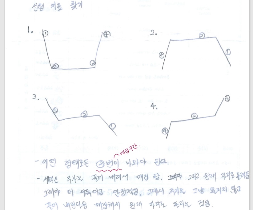 그렇다면 우리는 어떻게 선행 지표를 찾을까요? 단테 아저씨가 알려준 방법으로 선행 지표를 찾으면 돼요. 위의 그림에서 1번, 2번, 3번, 4번 패턴이 있어요. 밥그릇 패턴이에요. 우리가 매수해야 할 타점은 ③번 구간이에요. 그렇다면 ①, ②번 구간이 있어야 된다는 말이죠. 어떤 형태로든 ②번 구간이 나와야 된대요. 바로 세력의 매집 구간이죠. 세력은 주가를 끌어 내려서 매집하고 원래 자리로 돌려 둔대요. 그래야 더 이득이고 안정적이라고 해요. 그래서 주가를 그냥 올리지 않고 끌어내린 다음 매집해서 원래 자리로 돌리는 거래요.
