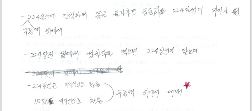 224일선 밑에서 쌍바닥을 찍으면 224일선에 닿는대요.