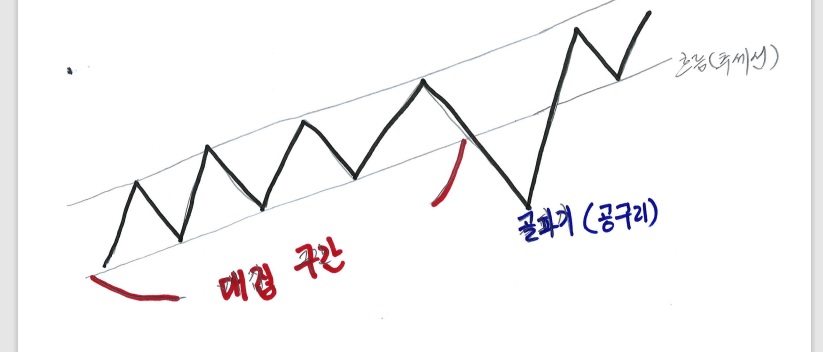 아무리 골파기가 나와도 큰 흐름은 깨면 안 돼요. 이런 골파기에 털리지 않으려면 매집구간을 확인하래요. 충분한 매집 구간이 보이는데 골파기가 나오면 세력이 빠져나온 게 아니므로 페이크에 당하지 않으면 된대요.