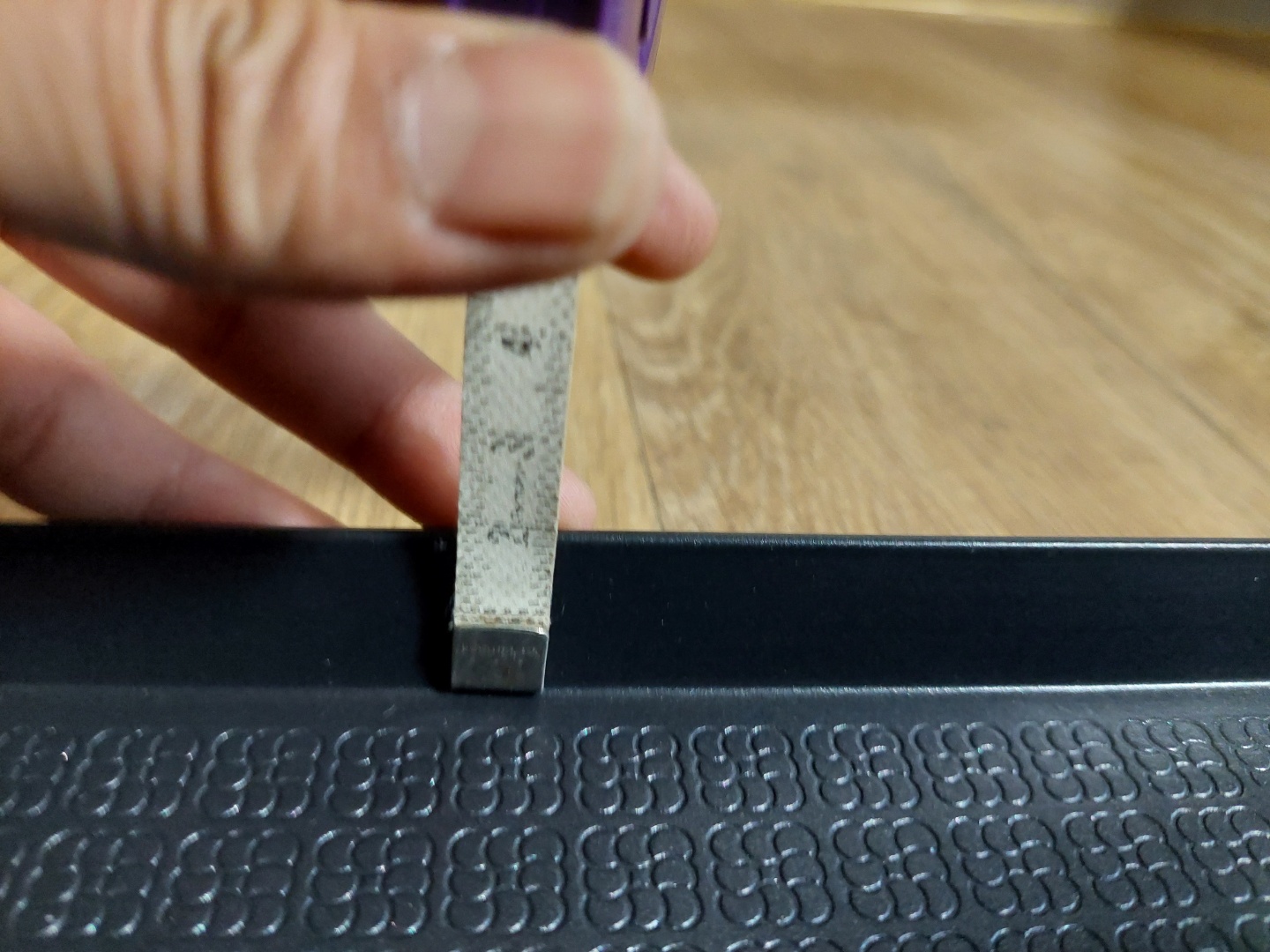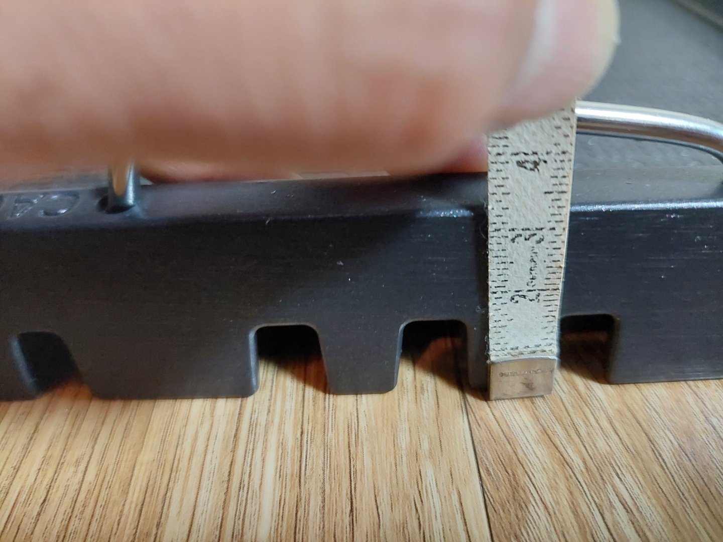 알고 봤더니 볶음팬의 안쪽의 깊이는 2cm를 넘지 못해요. 위의 사진은 대충 줄자로 재봤더니 2cm였어요. 거의 깊이가 없다고 생각하시면 맞을 거 같아요. 볶음팬에 뭘 볶아도 양념과 야채는 바람구멍으로 모두 탈출을 시도할 거예요. 상품 설명서에는 볶음팬 깊이가 3.5cm로 되어 있는데 달라도 너무 다르죠.