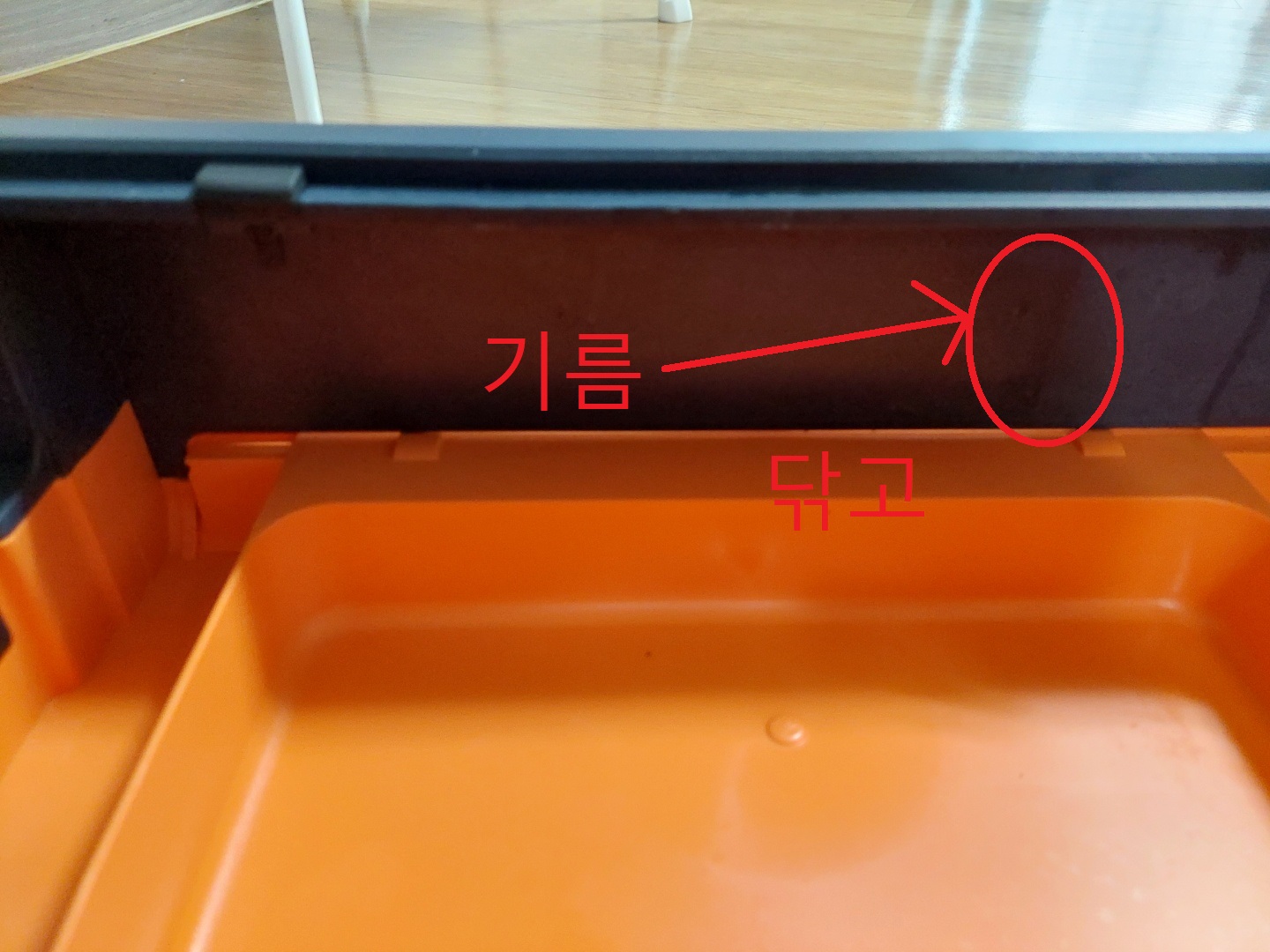 하지만 본체를 더 구체화하면 구성품이 단순하진 않아요. 본체에는 전원부, 기름받이, 기름 유도판이 있어요.