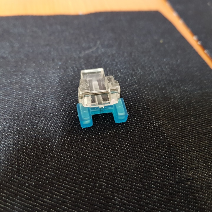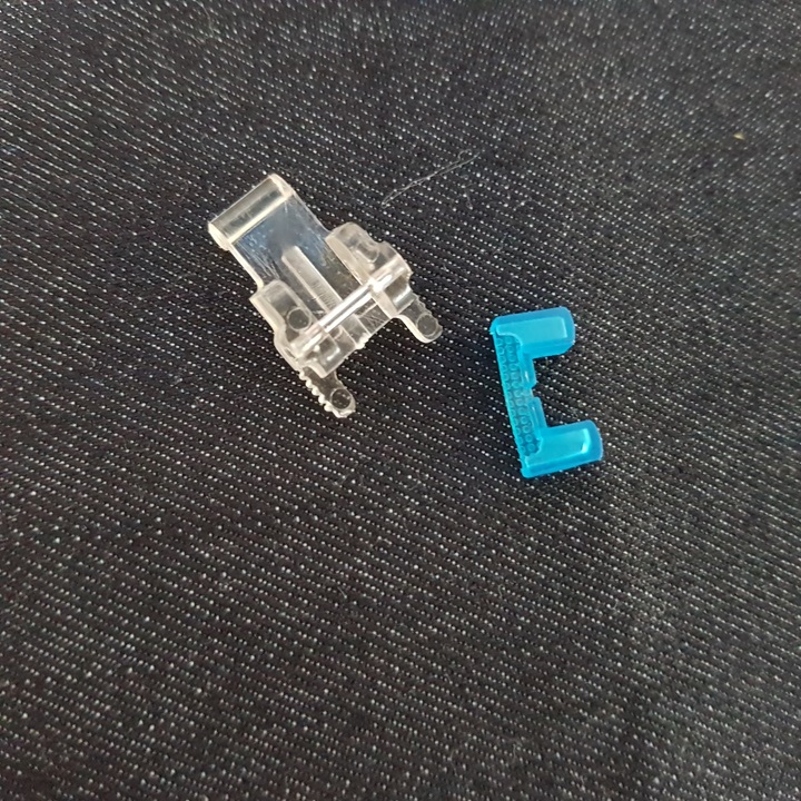 혼스 미니 재봉틀 단추달기 노루발 앞에는 아래 왼쪽 사진과 같이 고무로 된 파란색 캡이 씌워져 있다. 그러나 나는 아래 오른쪽 사진과 같이 캡을 뺏다. 아무래도 노루발과 단추가 미끄러지지 않도록 있는 거 같은데 파란색 캡을 씌우면 공간이 너무 빡빡해서 노루발 끼우기도 어렵고 노루발 밑으로 단추를 넣기도 어렵다.