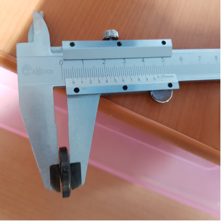 혼스 미니 재봉틀 단추달기 노루발은 단추가 크면 달 수 없다. 노루발 밑으로 단추가 들어가야 하는데 단추의 높이가 4.7mm 이상은 노루발 밑으로 단추가 안 들어간다. 아래 사진은 단추의 폭이 20mm이고 높이가 4.7mm인 단추이다. 혼스 미니 재봉틀로는 단추를 달 수 없다.