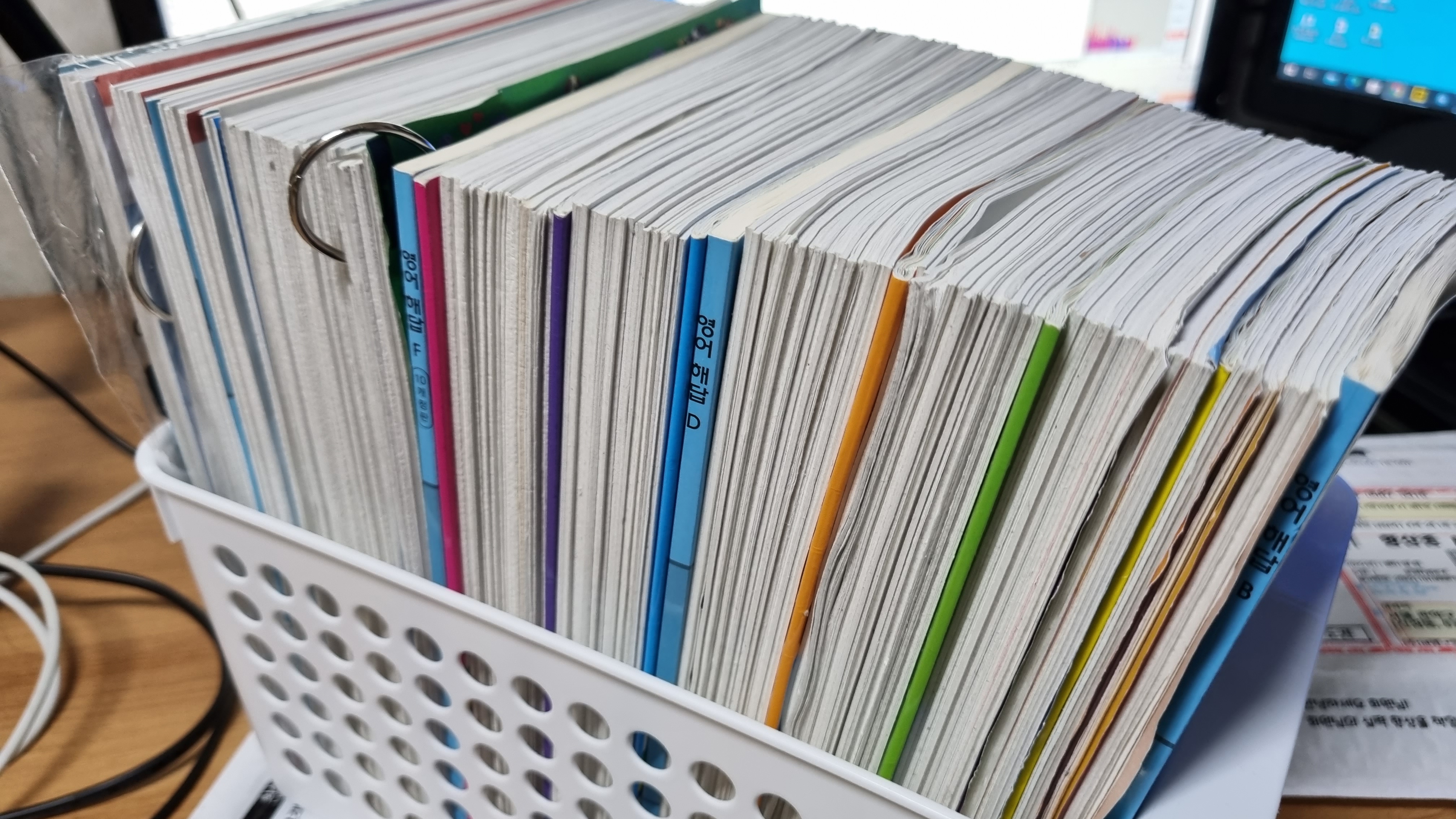 한 달에 한번 100장의 교재가 택배로 왔어요.