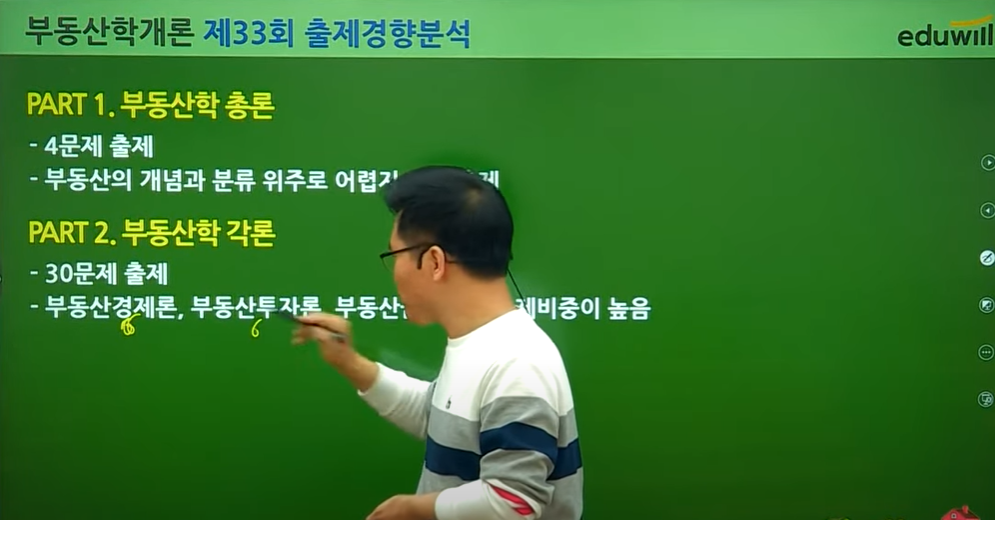 처음으로 봤던 영상이 부동산학개론 기초 영상이에요. 이영방 교수님이래요. 부동산학개론이 뭔가 그냥 봤는데 설명도 재밌고 이해도 잘 됐고, 선생님의 강의 스타일이 필자와 잘 맞는거 같아요. 그래서 그냥 아무 생각 없이 2022년 자료를 계속 봤어요. 꼭 공인중개사 시험 때문에 시청하는 게 아니더라도 그냥 상식으로 알아두면 좋은 내용인 거 같아서 그냥 계속 봤어요. 위의 캡쳐본은 2022년 강의예요.