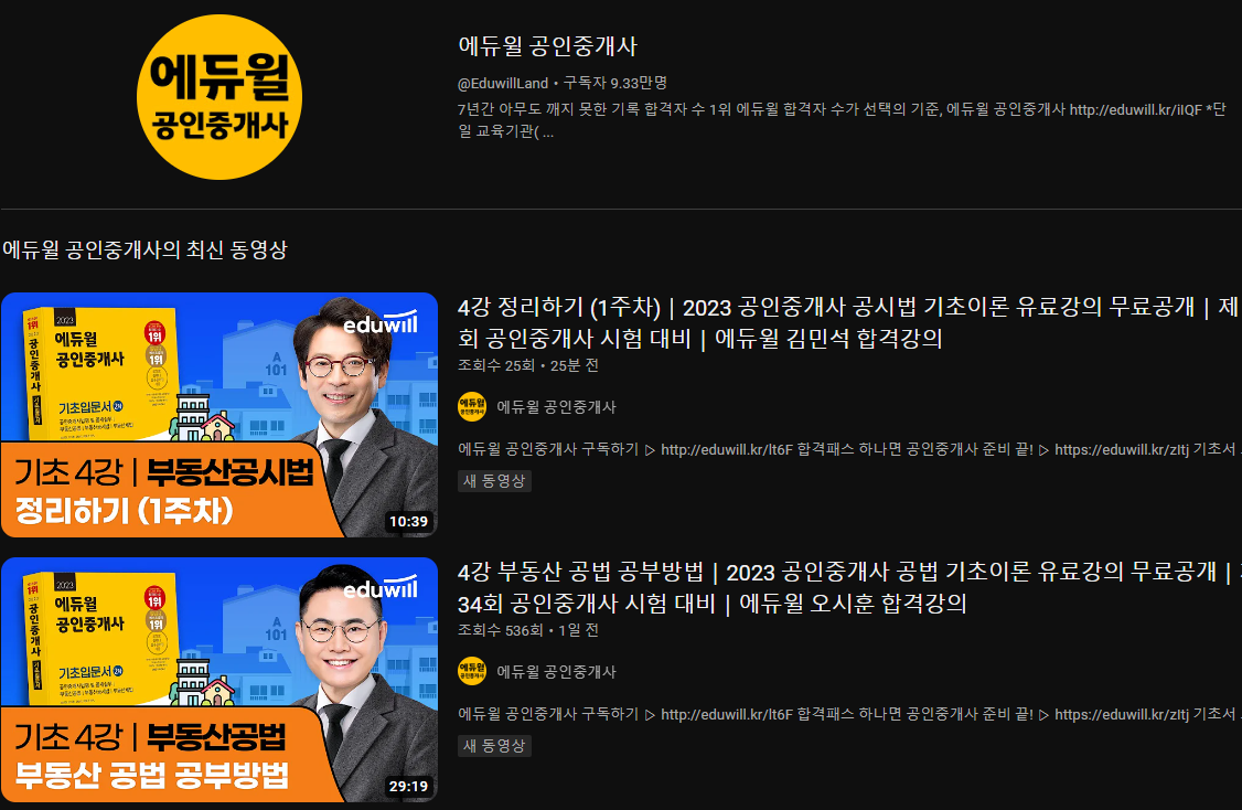 그런데 2023년 강의 영상도 올라오고 있어요. 무료 인강이지만 퀄리티가 좋은거 같아요. 다른 강의를 많이 시청해 본 경험이 없어서 '좋다', '나쁘다'라고 판단할 순 없지만 에듀윌 무료인강은 필자에게 많은 도움이 될 것 같아요. 이래서 에듀윌~ 에듀윌~ 하나 봐요.