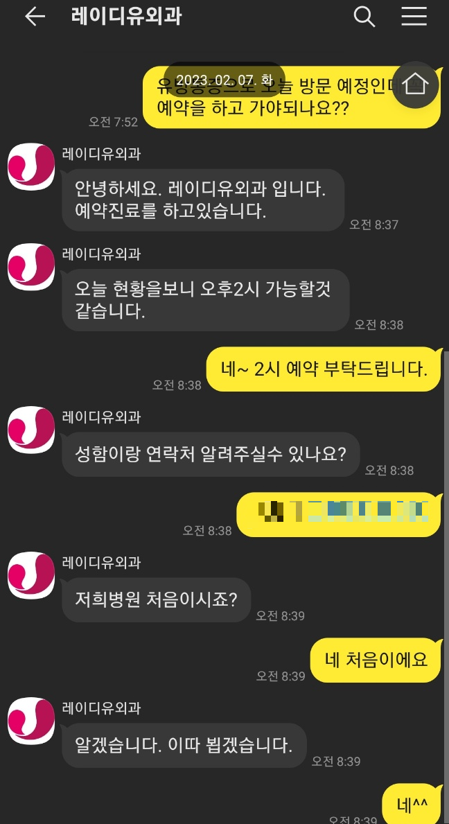두렵긴한데 병원을 어디로 가야 할지 몰랐어요. 그래서 유방외과, 유방클리닉을 검색했어요. 서울대입구역에 있는 레이디유외과만 유방통증 병원으로 나와요. 선택의 여지가 없어요. 그래서 이른 아침에 카톡으로 예약하고 당일 방문했어요.