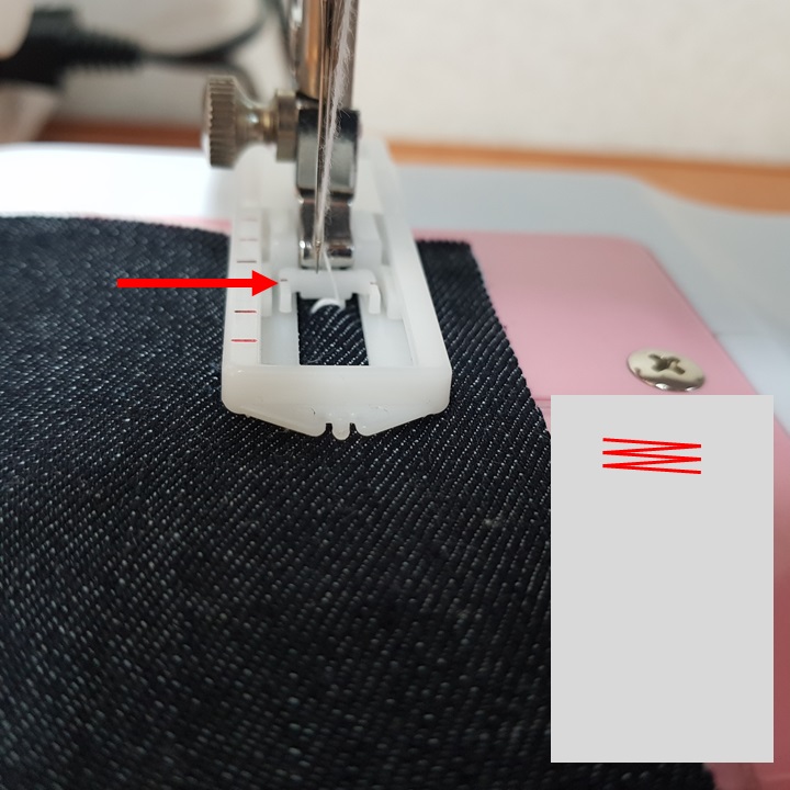 슬라이더가 단추구멍 노루발 제일 앞까지 위치하여 더 이상 움직이지 않을 때까지 7번 패턴으로 재봉한다.