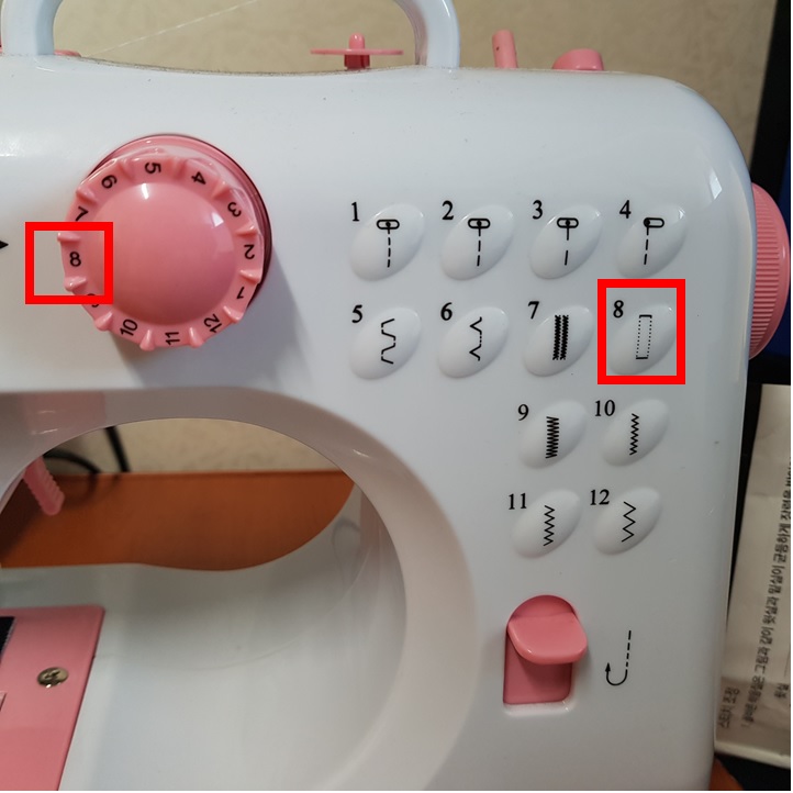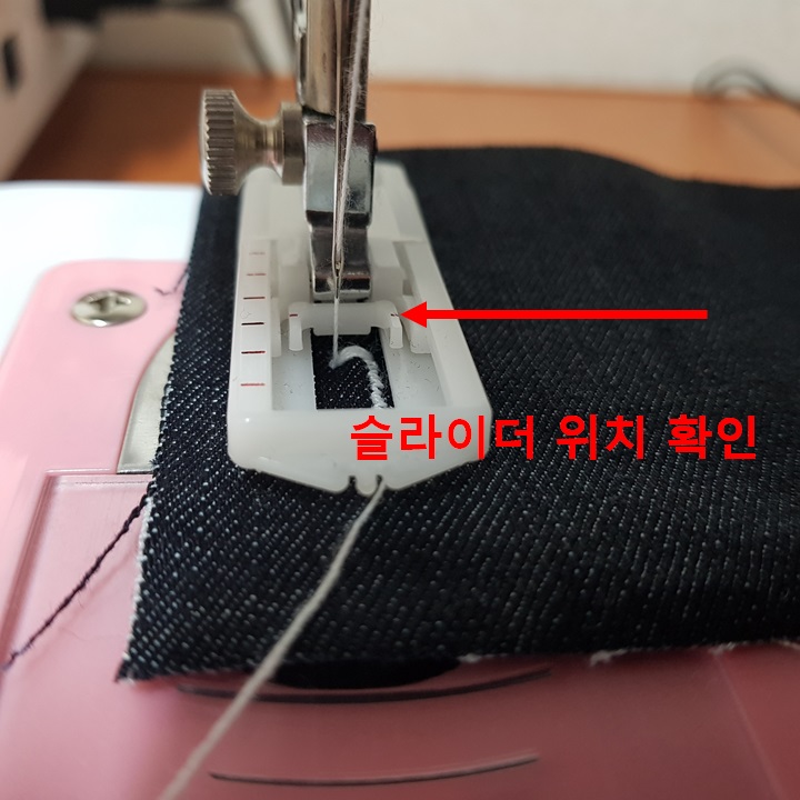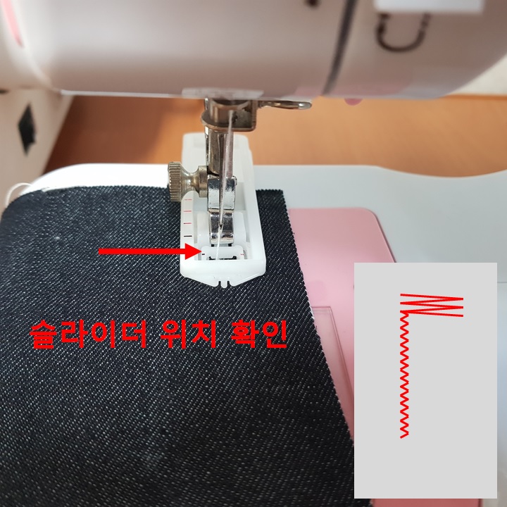 슬라이더가 움직이지 않도록 하고 8번 패턴으로 4~5번 재봉한다.