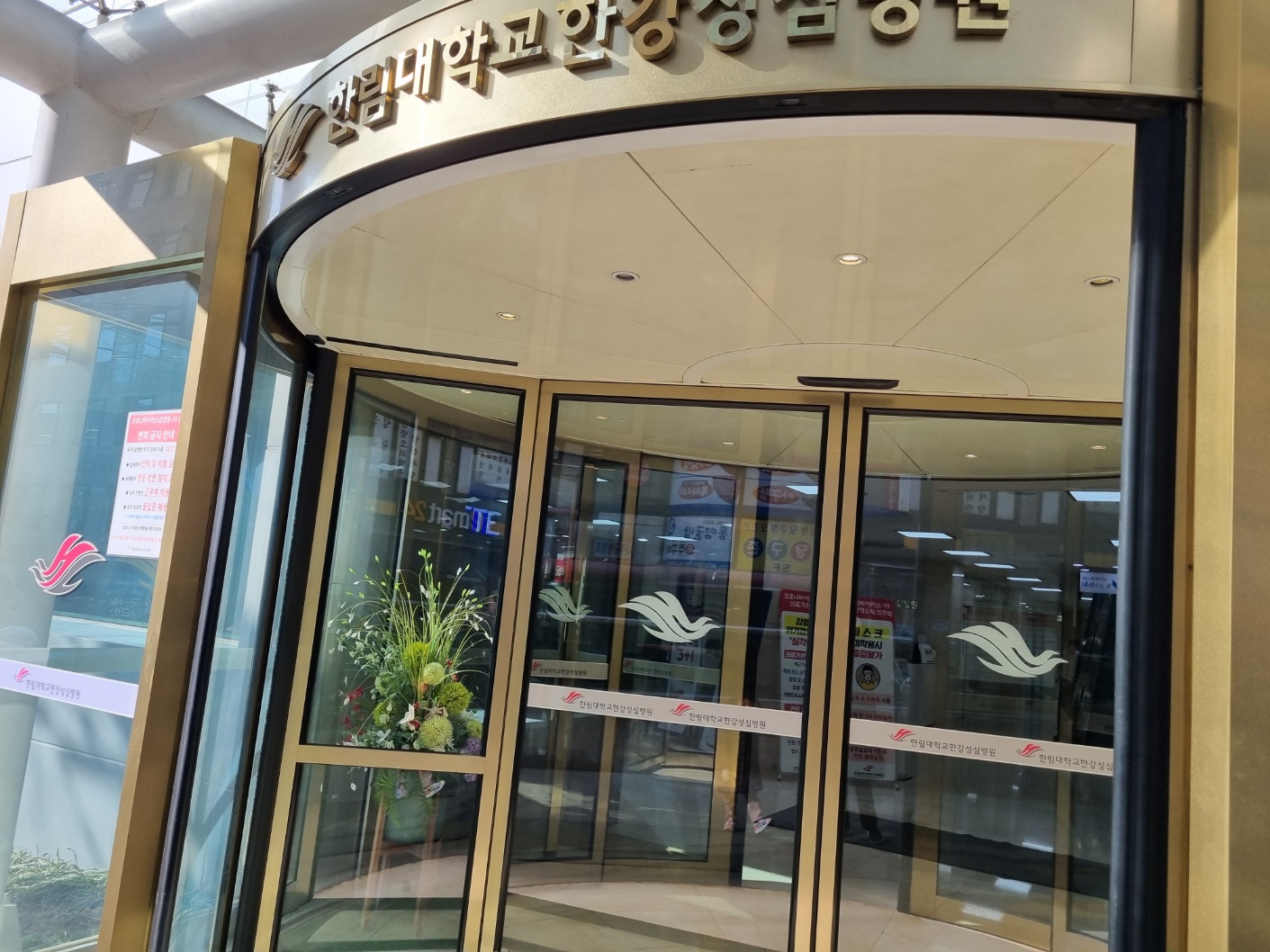 사건 발생 하루가 지나고 한림대학교 화상전문병원으로 갔어요. 외래는 큰길에 있는 건물 입구로 들어가는 것이 아니라 건물 옆 응급실 방향 골목으로 들어가서 응급실을 지나치면 회전문이 보여요. 회전문으로 들어가요. 1층은 로비예요. 두리번거렸더니 안내 직원이 2층으로 올라가래요.
