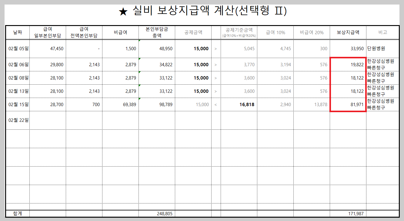필자는 2월 15일 병원비 중 81,971원을 보상받을 수 있어요.