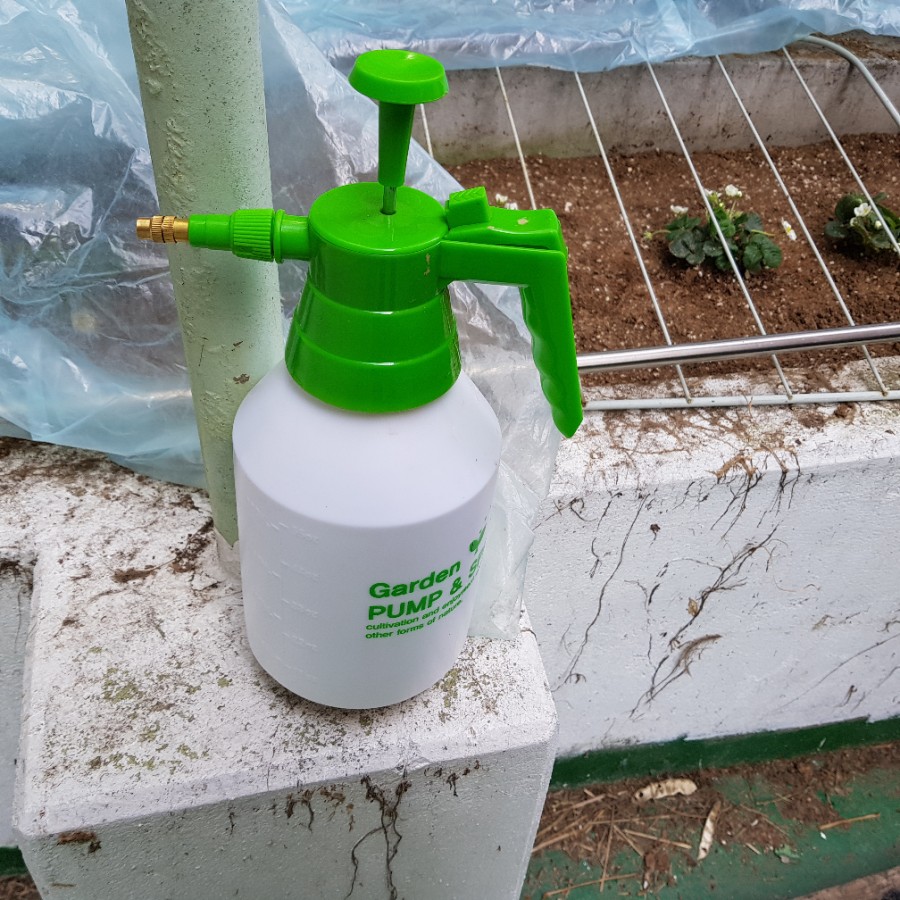 날씨가 갑자기 추워져서 얼어 죽을까 봐 걱정했다. 딸기는 5º 이하가 되면 자라기 어렵다. 아침에 딸기밭 보러 나갔는데 누군가 딸기밭 비닐하우스를 만들어 놨다. 딸기밭 비닐하우스라고 하기엔 나의 작은 딸기 텃밭이 너무 초라하지만 굉장히 감동이고 행복했다. 아마도 아랫집 아저씨가 만든 거 같았다. 비닐을 걷고 다이소에서 판매하는 펌프로 물을 한통 줬다. 총 1500ml이다. 그리고 다시 비닐을 씌웠다.