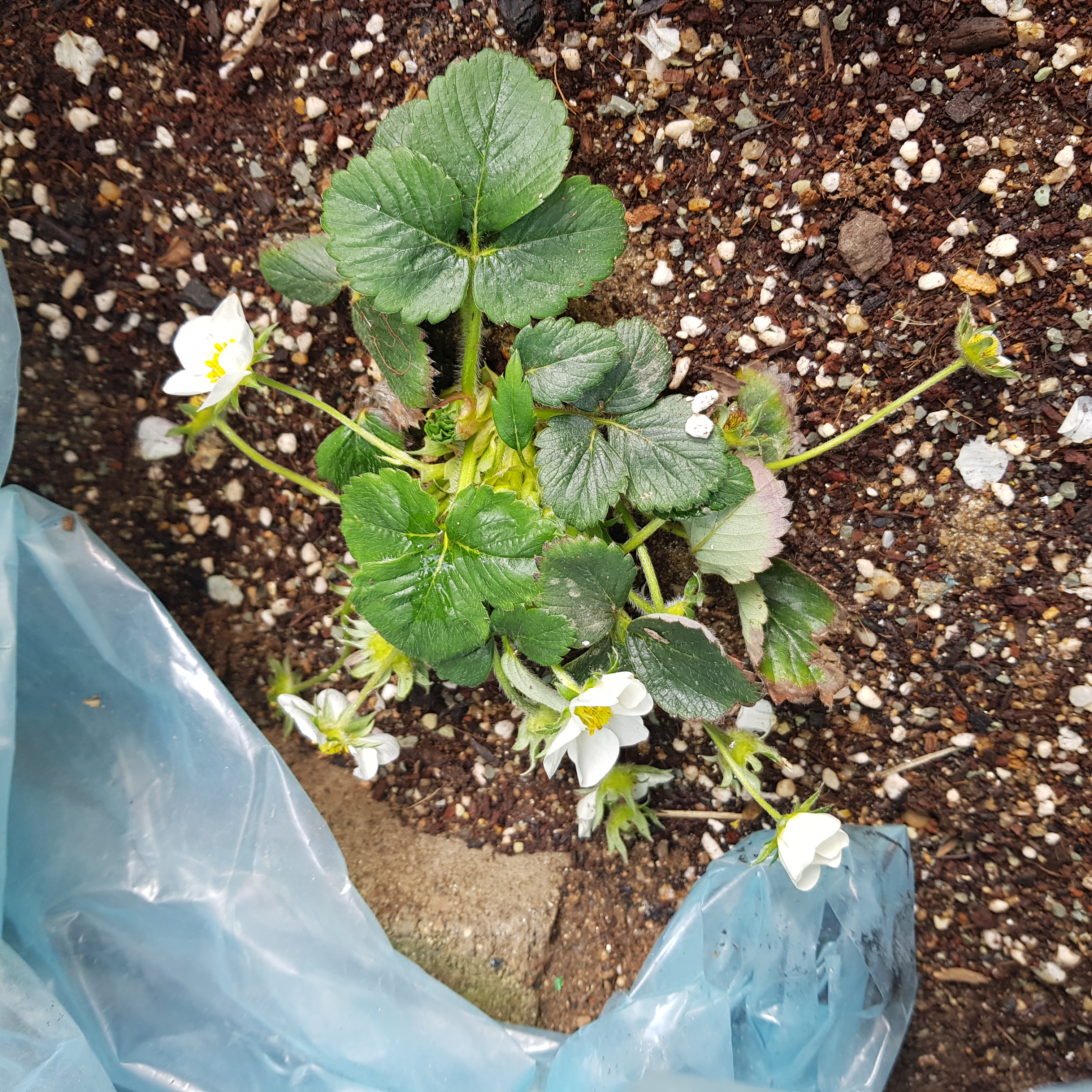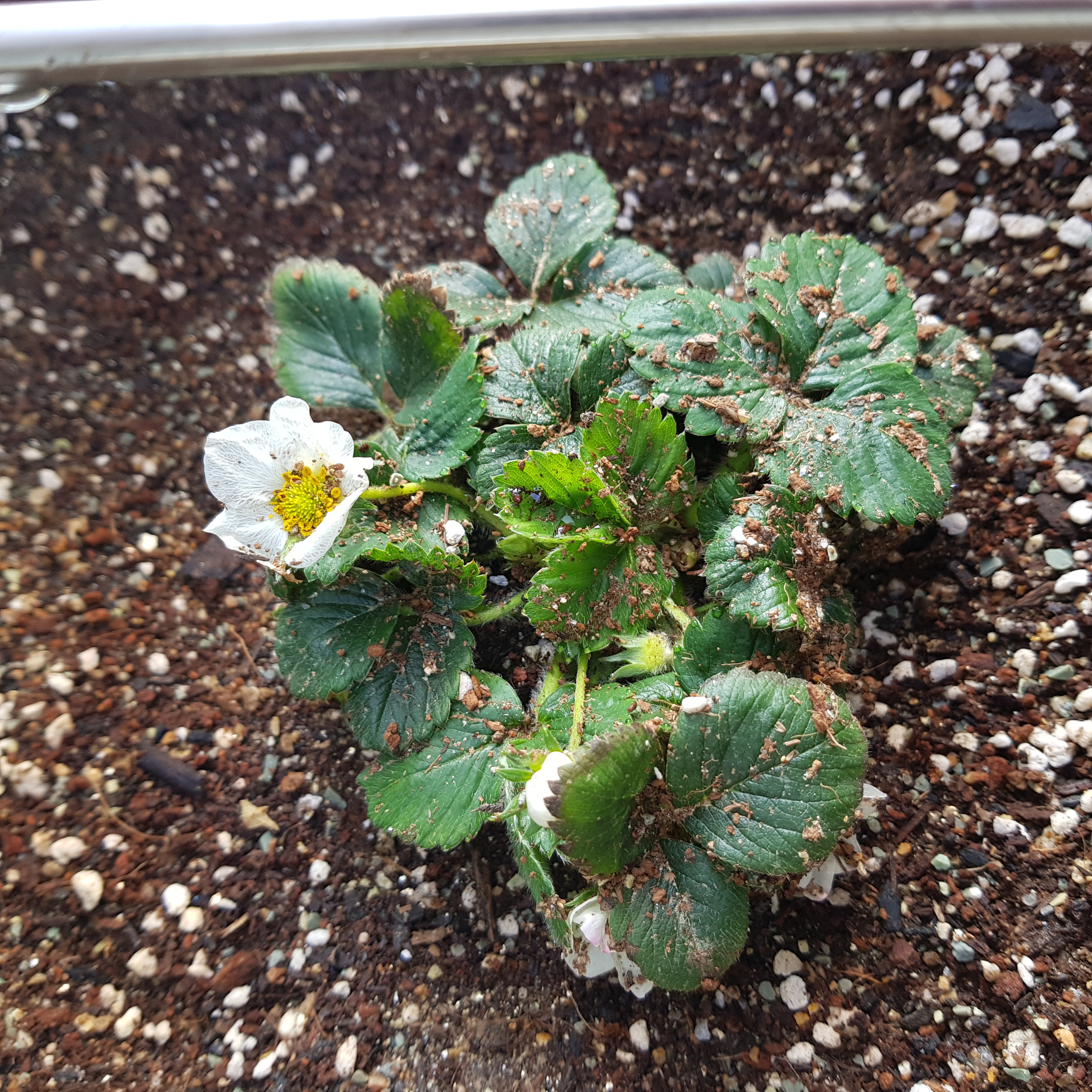 비닐을 걷고 노지 딸기 상태를 확인했다. 비가 오고 날이 흐려서 땅은 마르지 않았지만 흙투성이다. 꽃도 계속 피고 있고 잘 자라고 있다. 다행이다. 노지 딸기 키우기는 날씨의 영향을 많이 받아 힘들다.