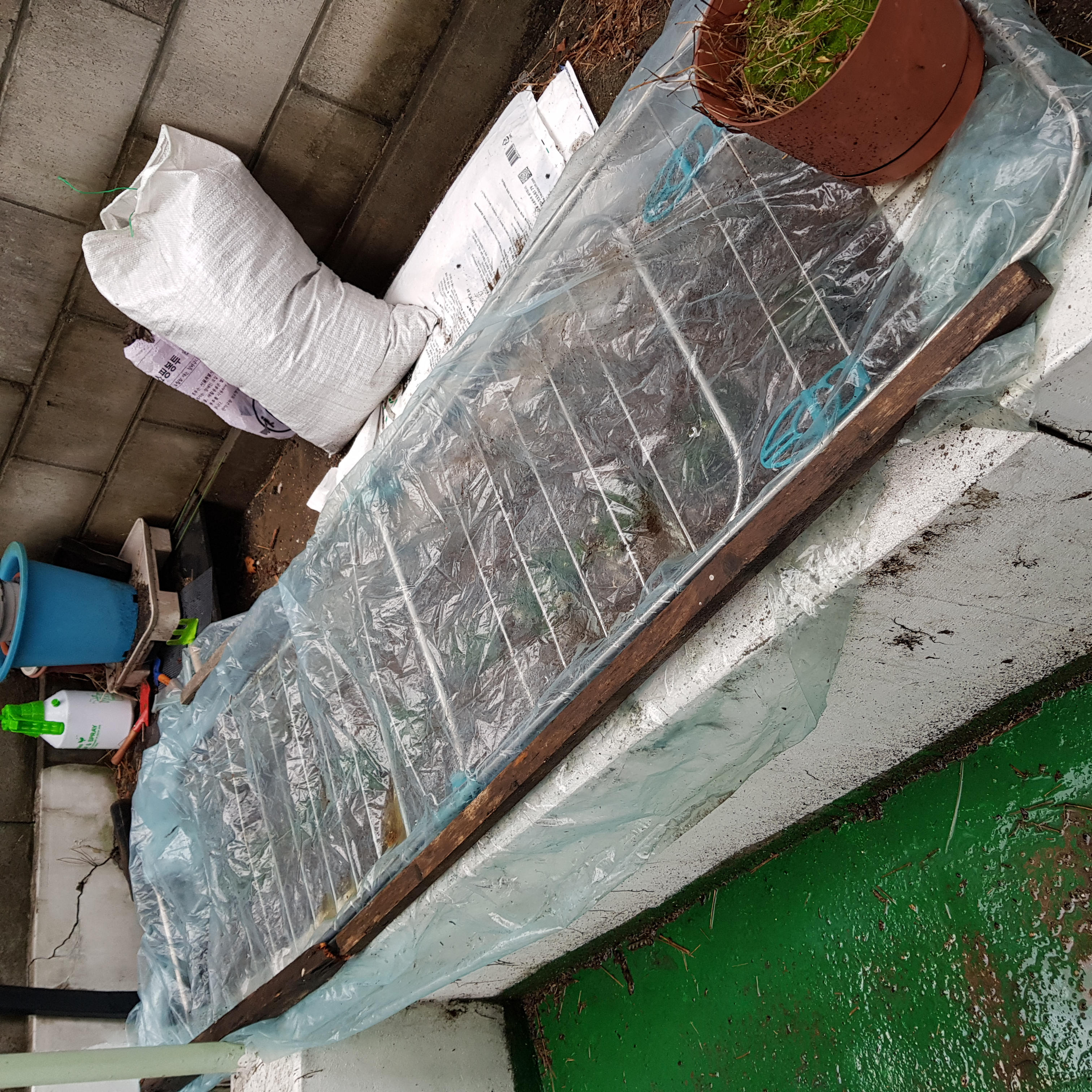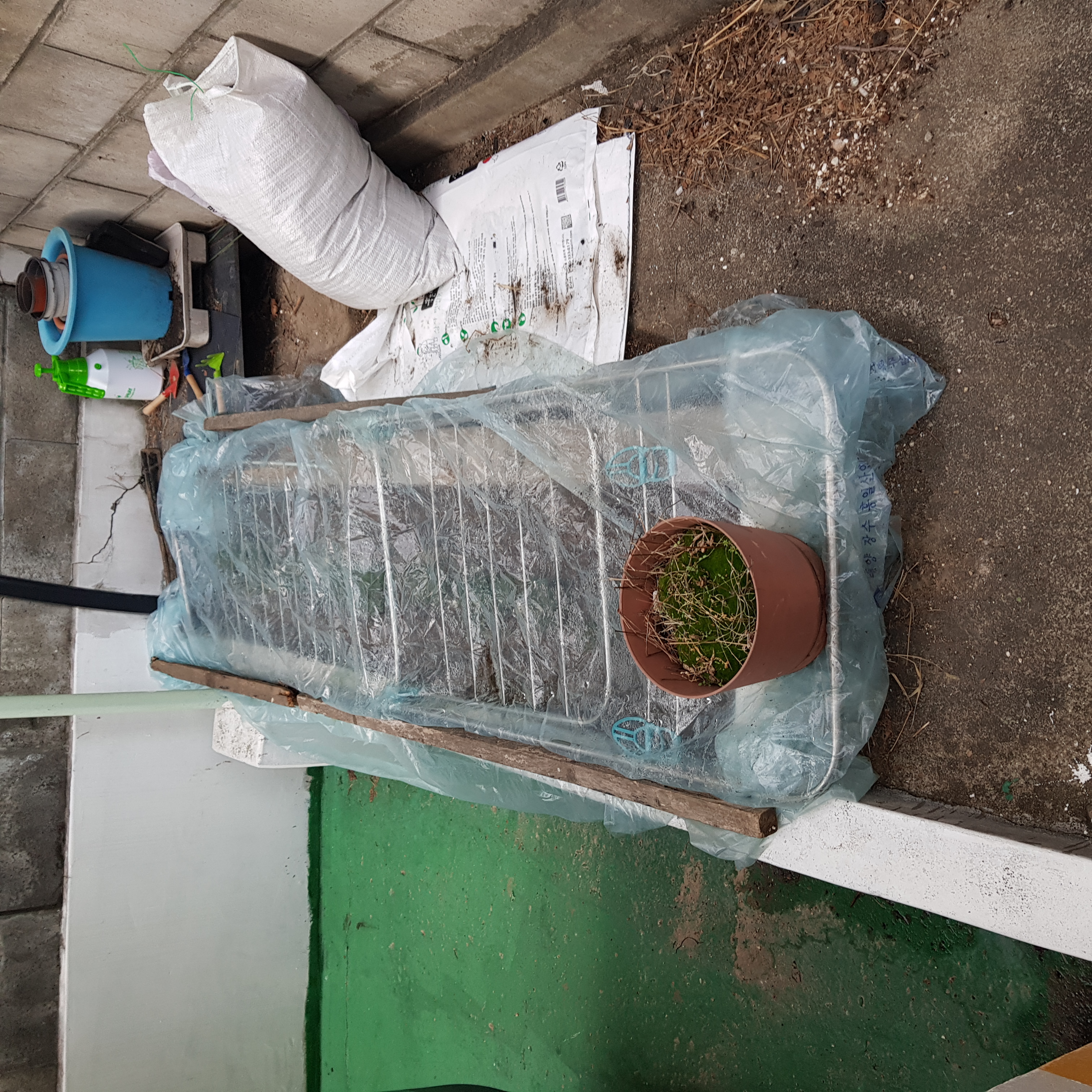 한파 주의보다. 비닐로 꽁꽁 덮었다.