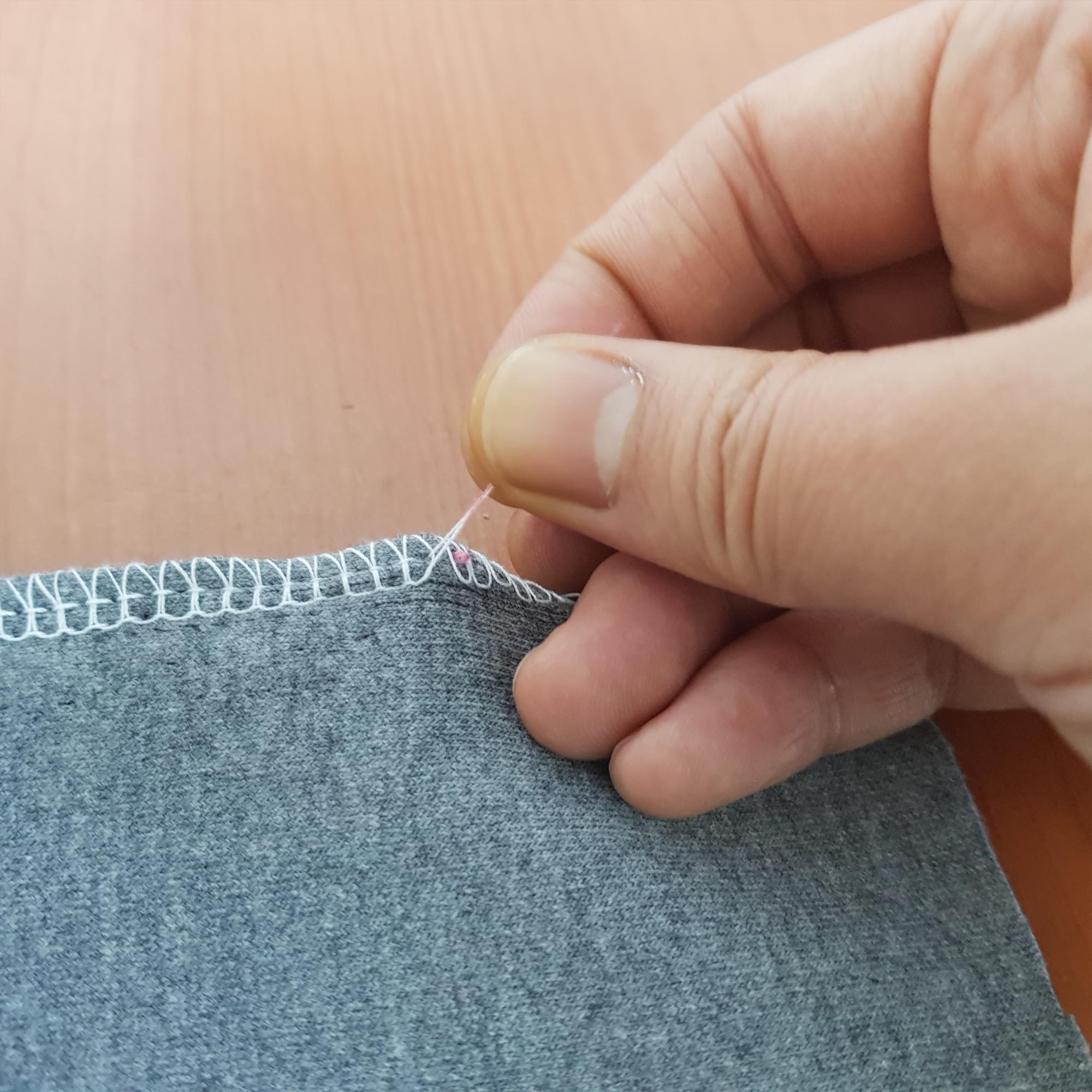 원단에 남아있는 루퍼실을 당겨서 제거한다. 루퍼실은 힘주지 않아도 쉽게 풀린다.