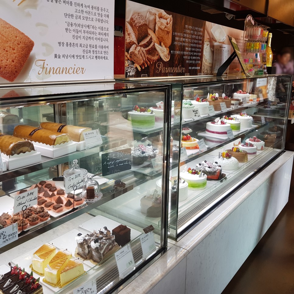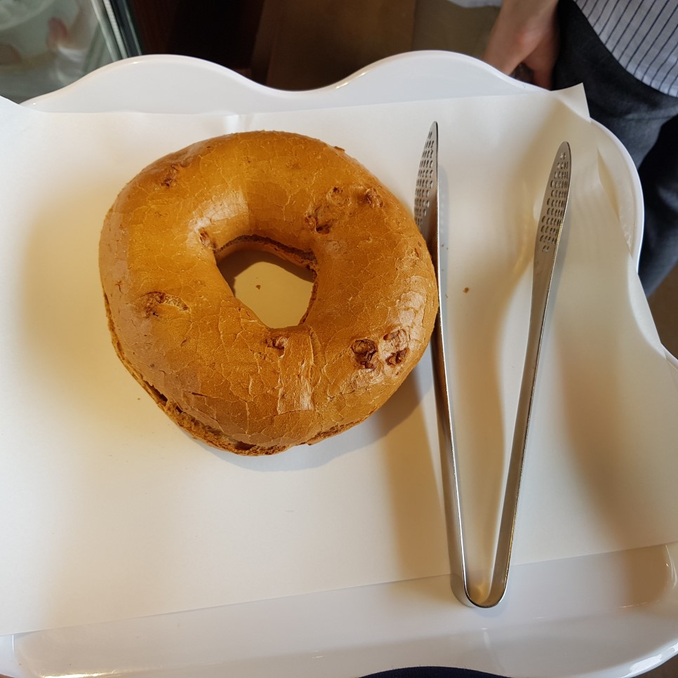 아들이 좋아하는 소보르빵도 사고 유명하다는 몽블랑도 사고 커피도 시켰다. 어린 아들이 초콜릿 토핑 된 케이크를 사자고 떼를 써서 쇼콜라 아메르 케이크도 샀다 ㅠㅠ. 사람이 많아서 음료는 대기시간 20분 정도 걸린다고 했다ㅠㅠ 빵은 먹기 좋은 크기로 잘라서 준다. 개인적으로 베이글을 별로 안 좋아해서 안 사려고 했는데 사람들이 어니언킹을 하나씩 다 먹고 있어서 안 살 수가 없었다.