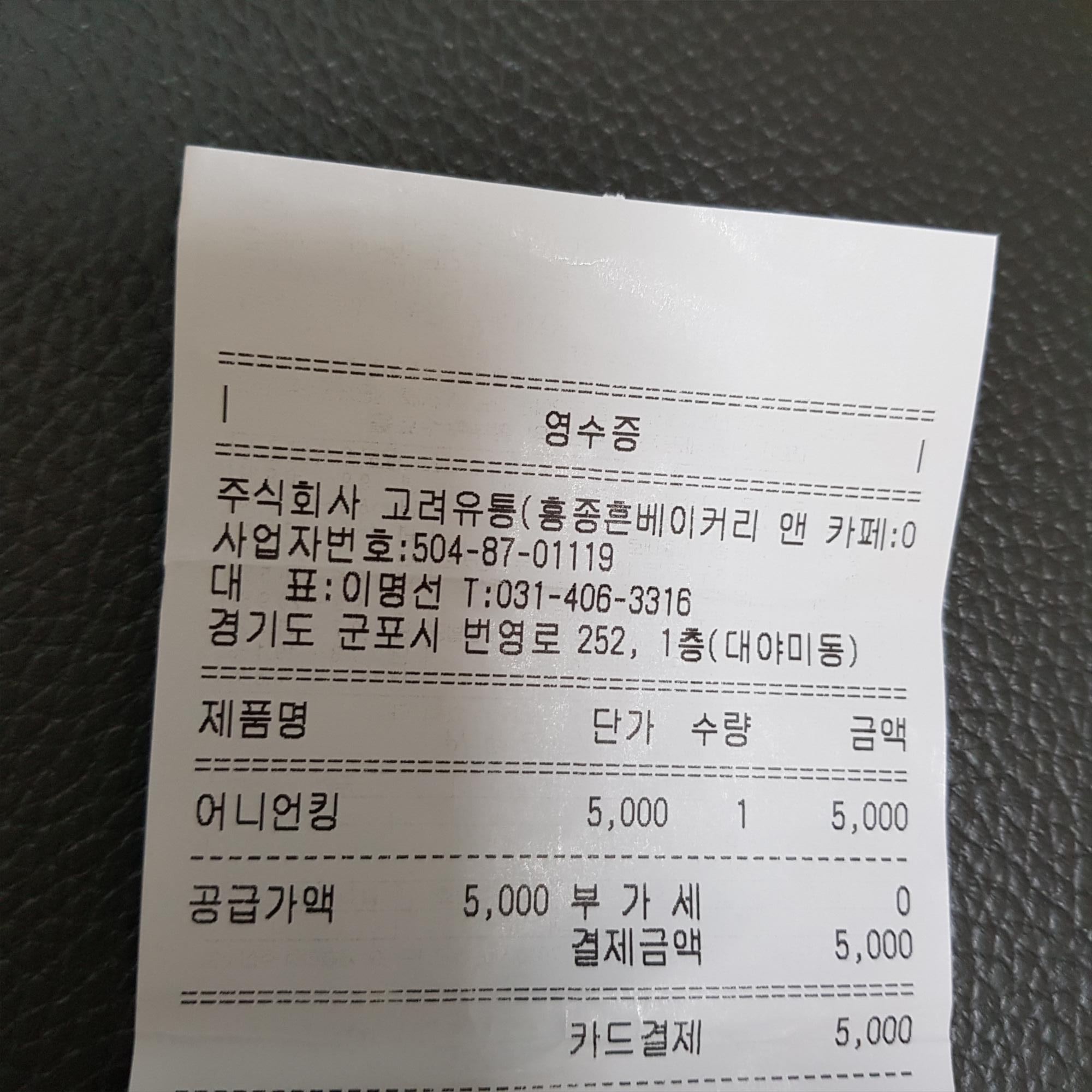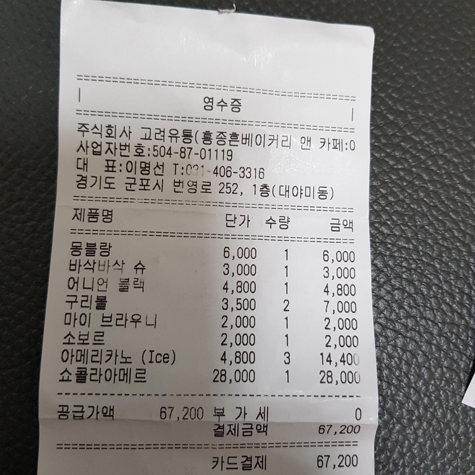 집에 돌아와서 영수증을 확인했다. 군포 대한민국 명장 홍종흔 베이커리 & 카페에서 79,000원을 썼다.