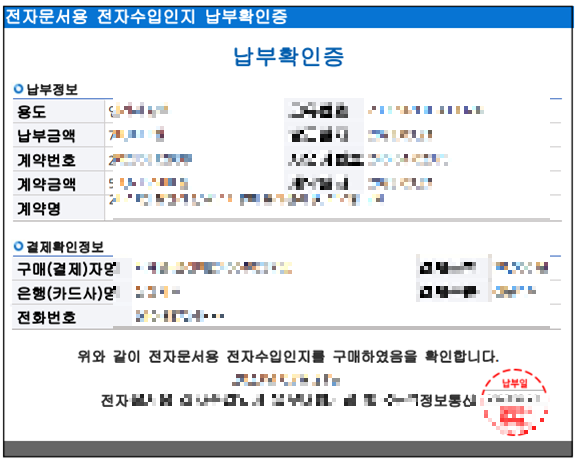 납부 확인증도 저장해 뒀어요. 인지세는 조달플랫폼 업체가 내는게 아니에요. 오로지 필자 부담이에요. 조달플랫폼 업체와 계약할 때 계약서에도 인지세 등 각종 세금은 필자가 부담하는 걸로 계약이 됐어요.