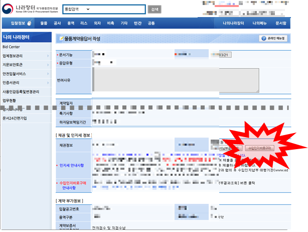 개인 인증서로 로그인을 해야 돼요. 그리고 동의, 동의, 동의 하면 전자서명이 완료 돼요. 전자서명도 끝나고 조달플랫폼 업체에 연락을 했어요. 완료했다고. 그랬더니 인지세를 납부하래요.