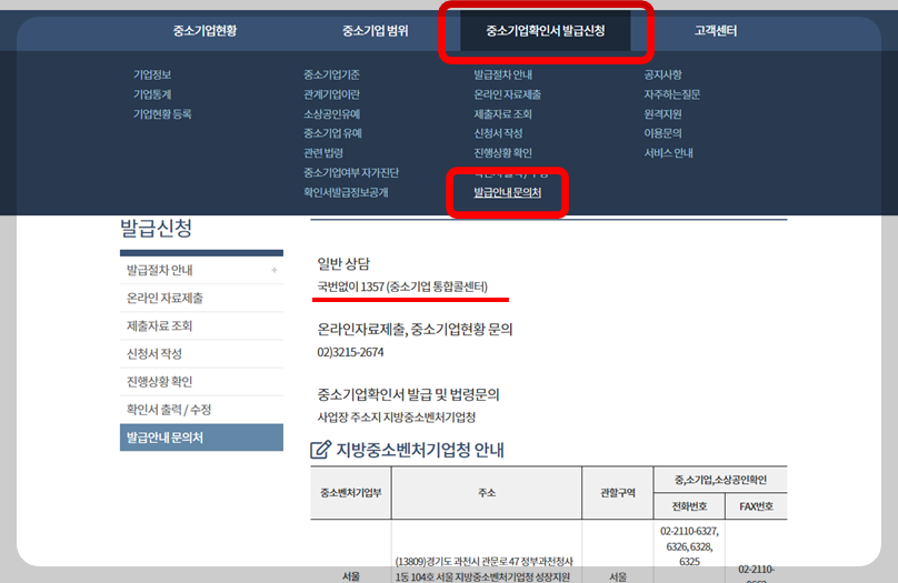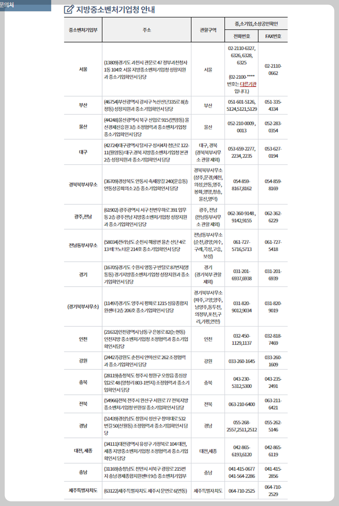 해당 지역의 중소벤처기업부에 전화하라고 친절히 전화번호도 알려줬어요.
